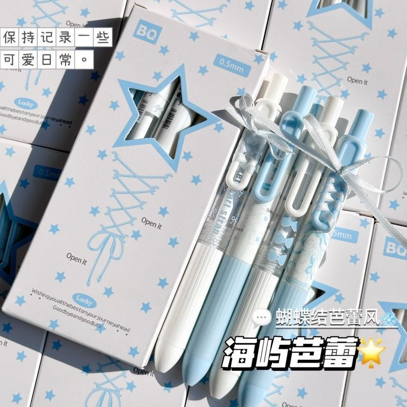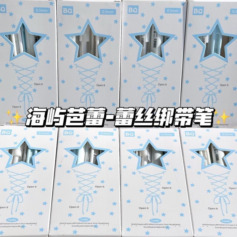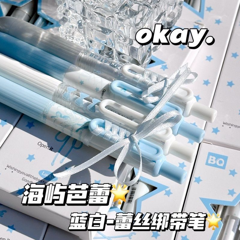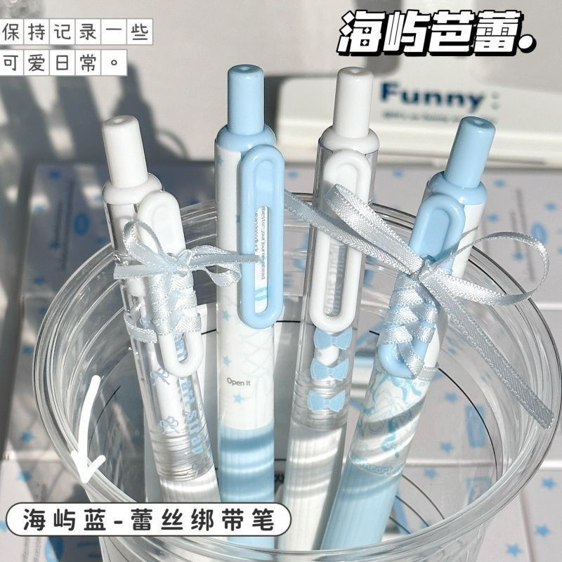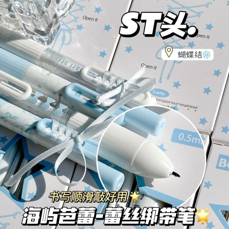 【开学季❗️海屿芭蕾按动笔】蕾丝绑带笔ins高颜值,学生考试速干刷题笔,字迹清晰,速干成型!开学季学生考试中性笔刷题笔0.5黑笔笔芯顺滑水笔L