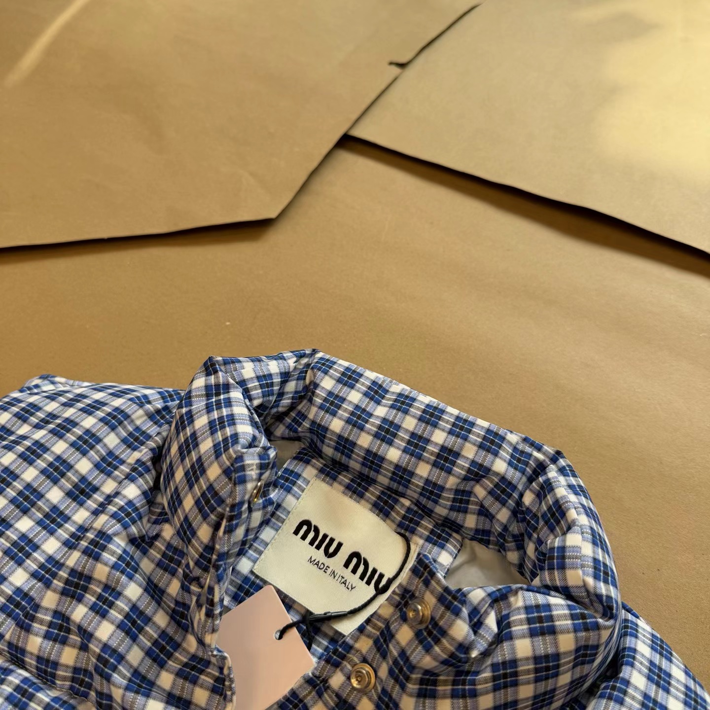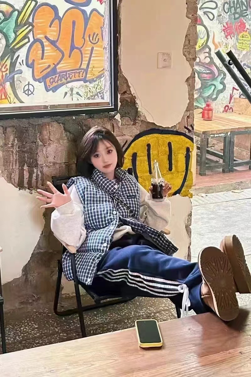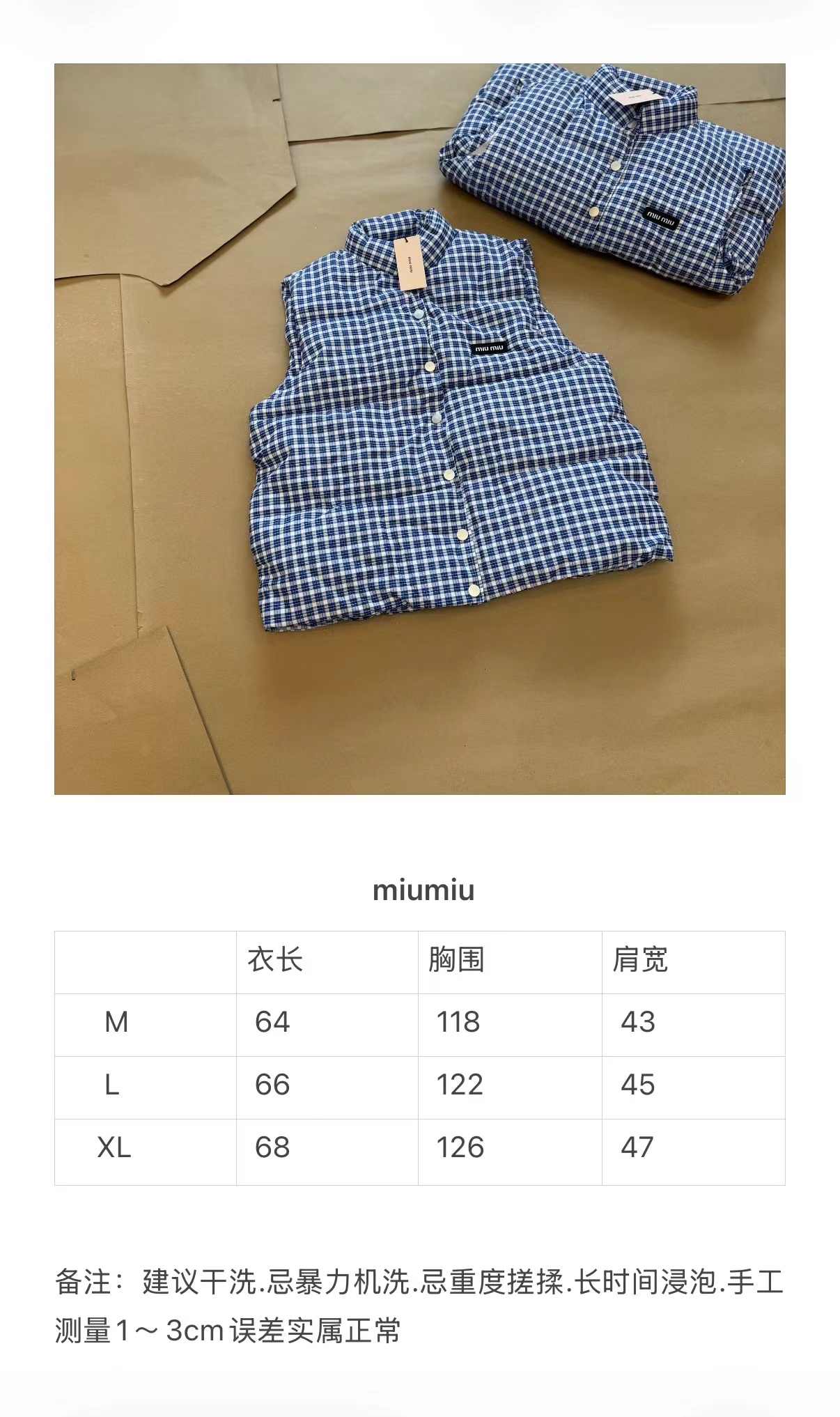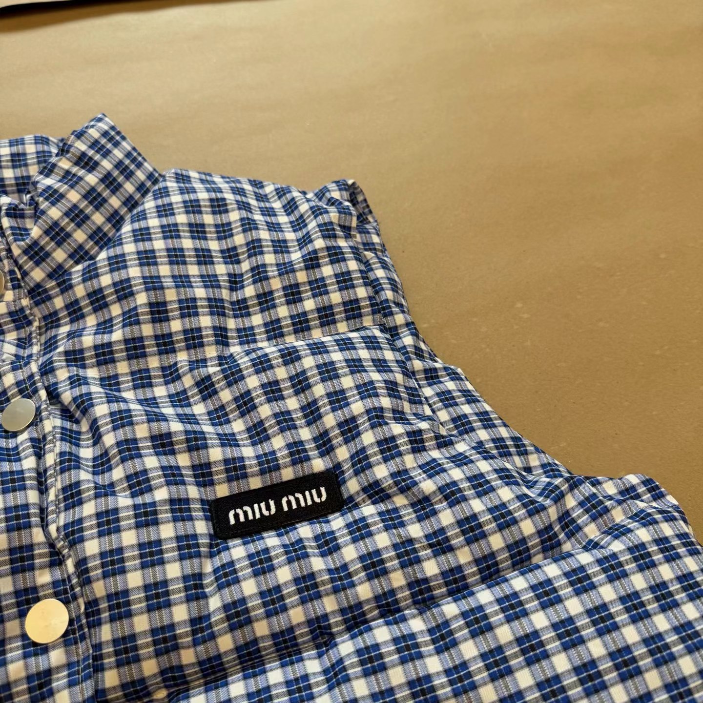 25Fw 蓝色格纹无袖高领马甲背心棉服