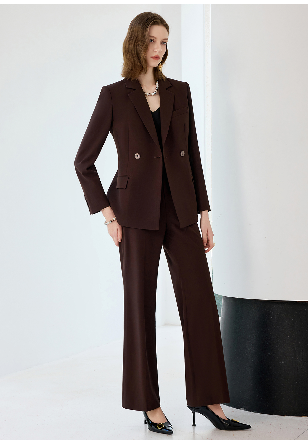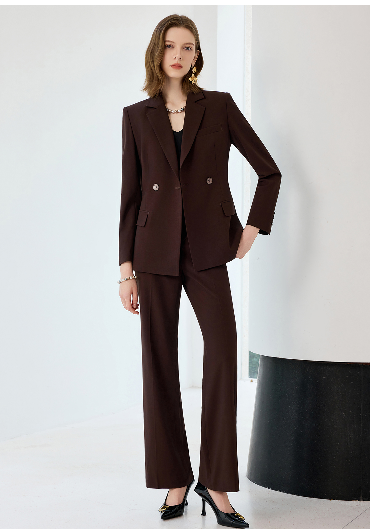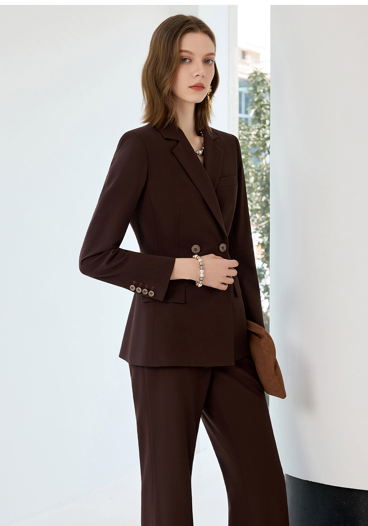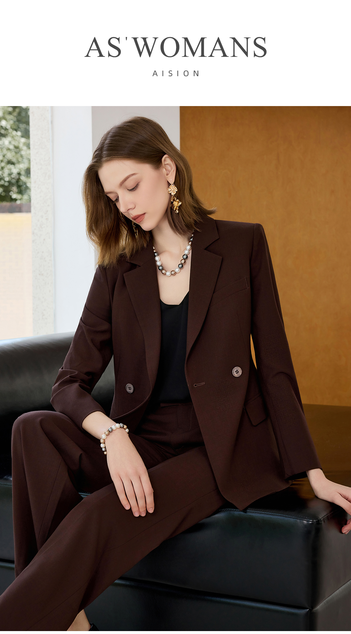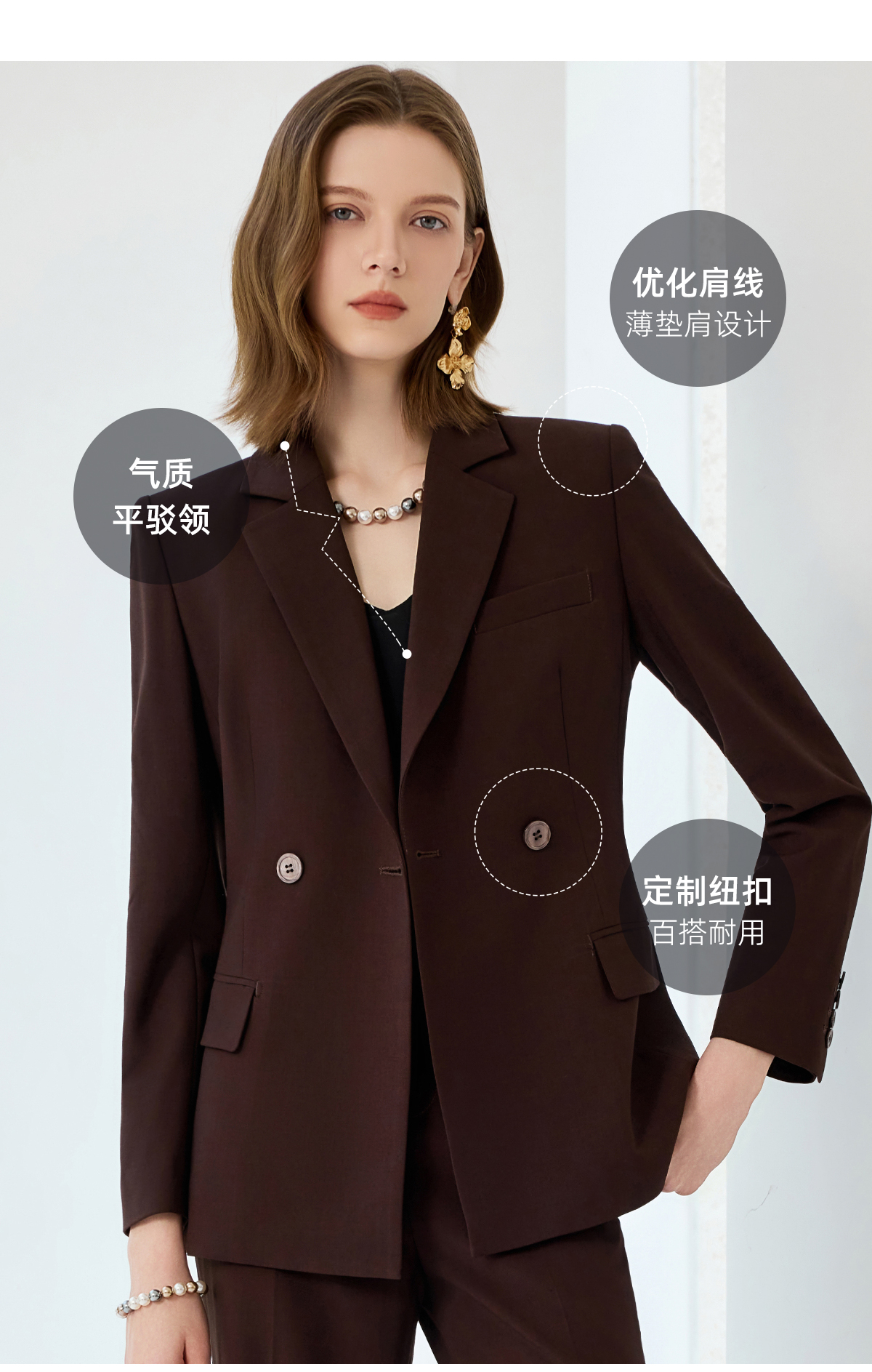 艾尚臣羊毛职业套装女秋冬贵气感老钱风西装红棕色高级感西服正装
