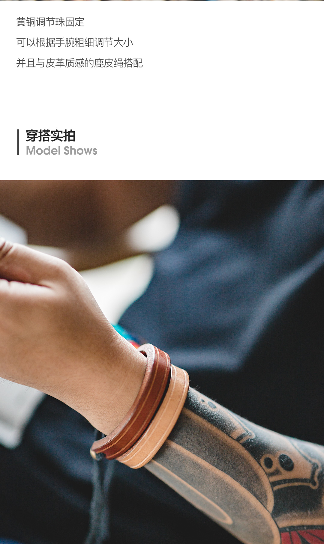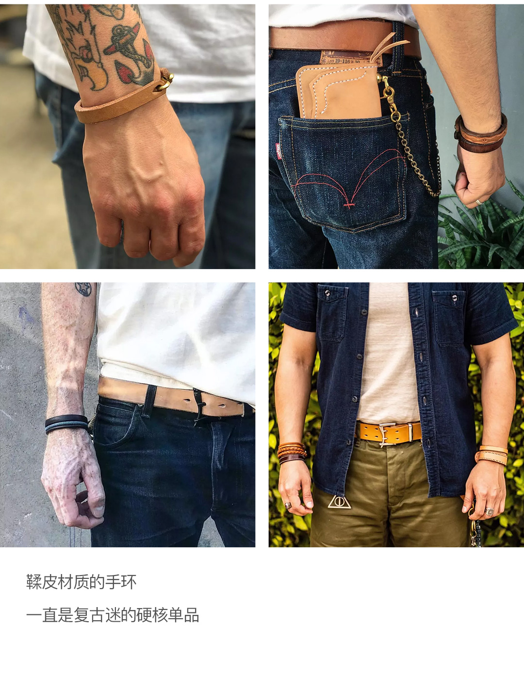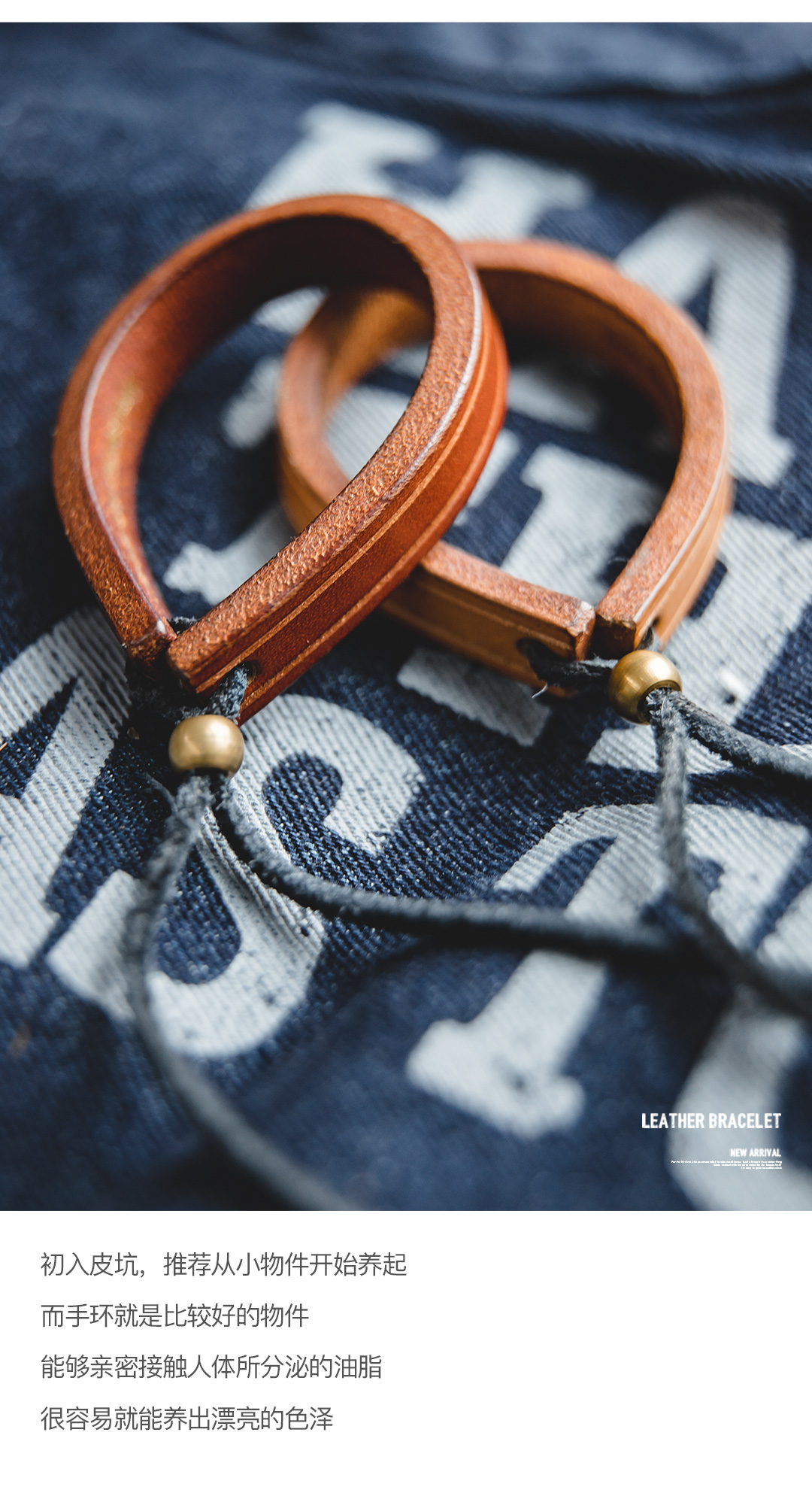工装优选 美式复古一生之环植鞣皮手环手镯阿美咔叽首饰配饰品男女