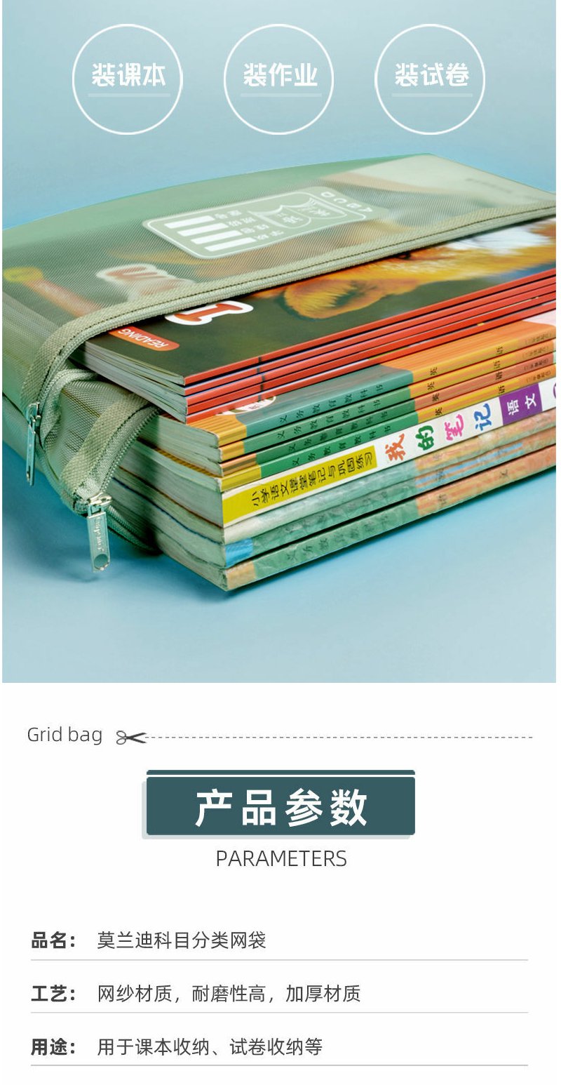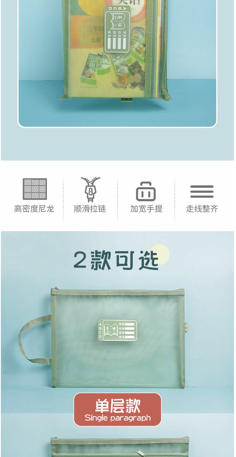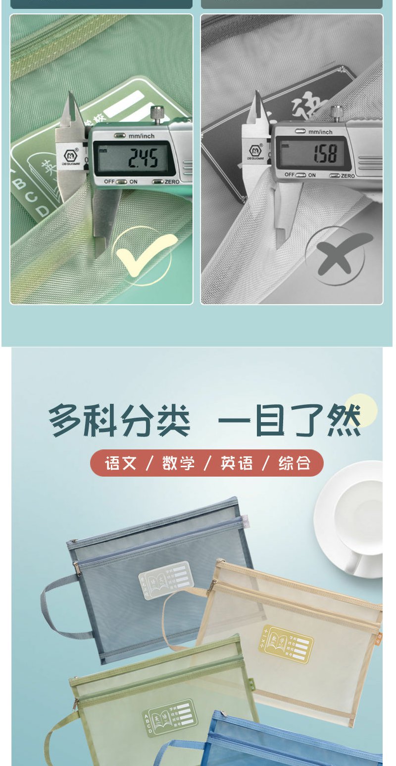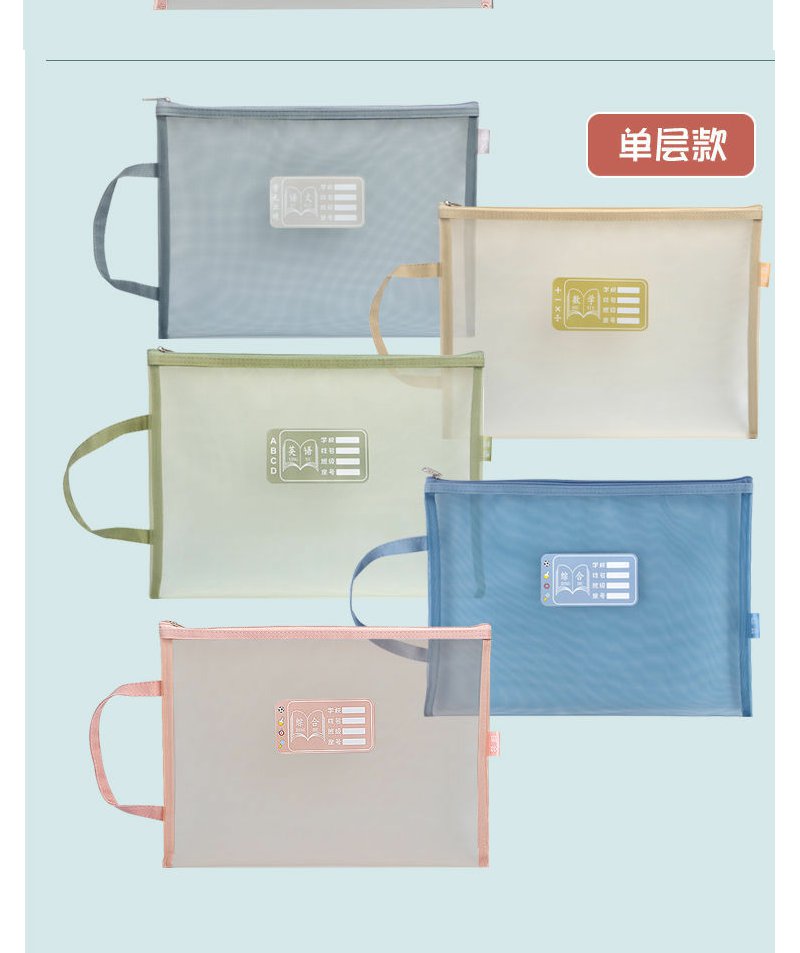 科目分类文件袋大容量双层拉链作业袋学生用透明尼龙网纱A4资料袋