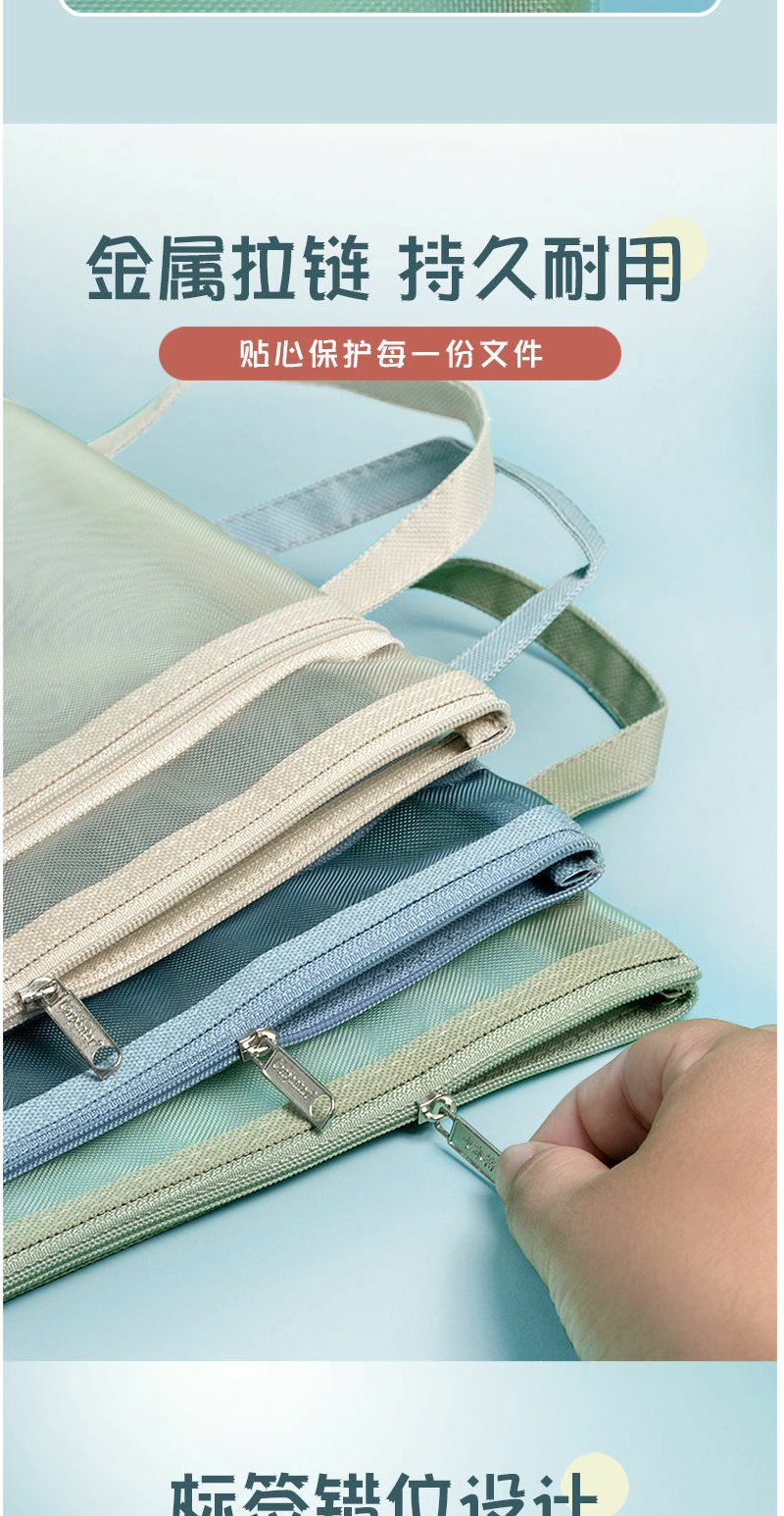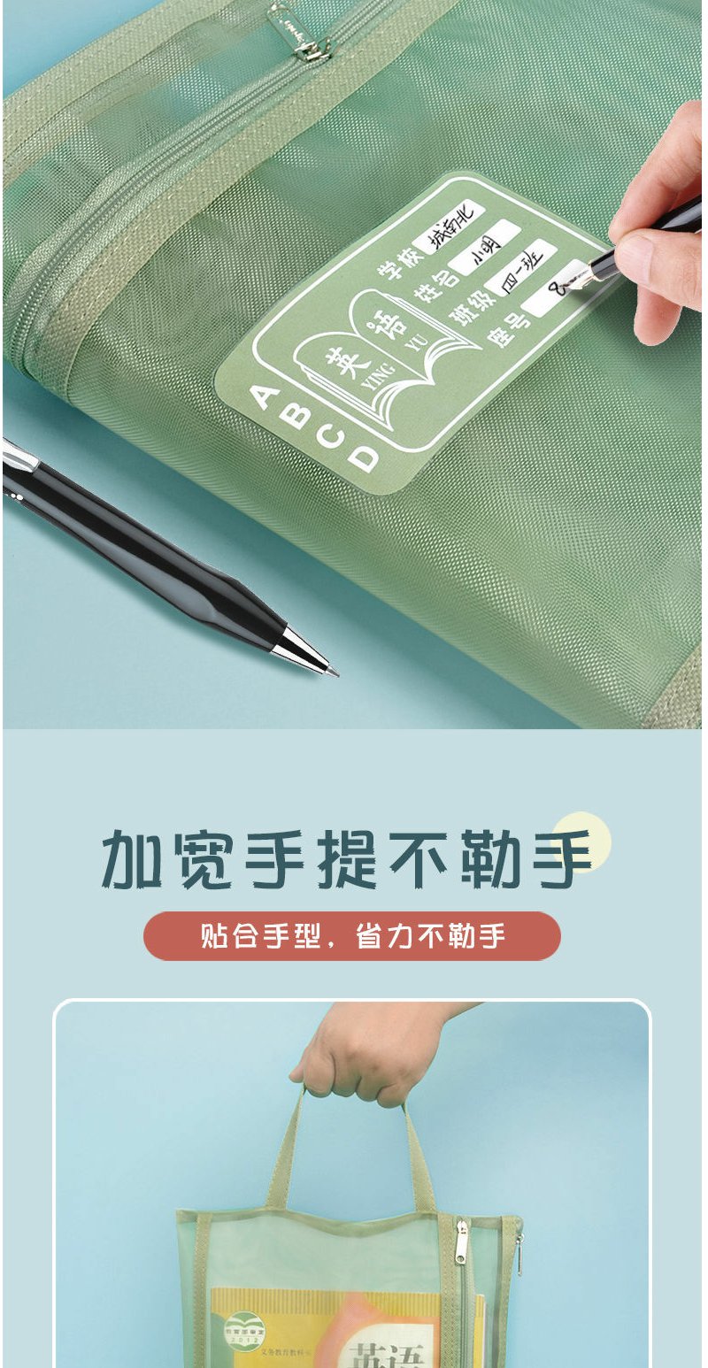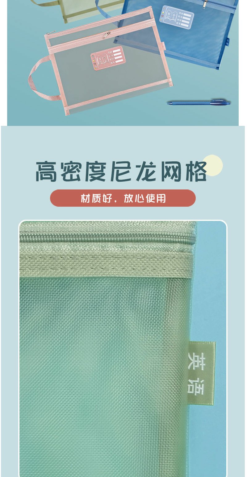 科目分类文件袋大容量双层拉链作业袋学生用透明尼龙网纱A4资料袋