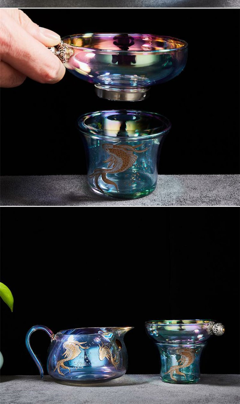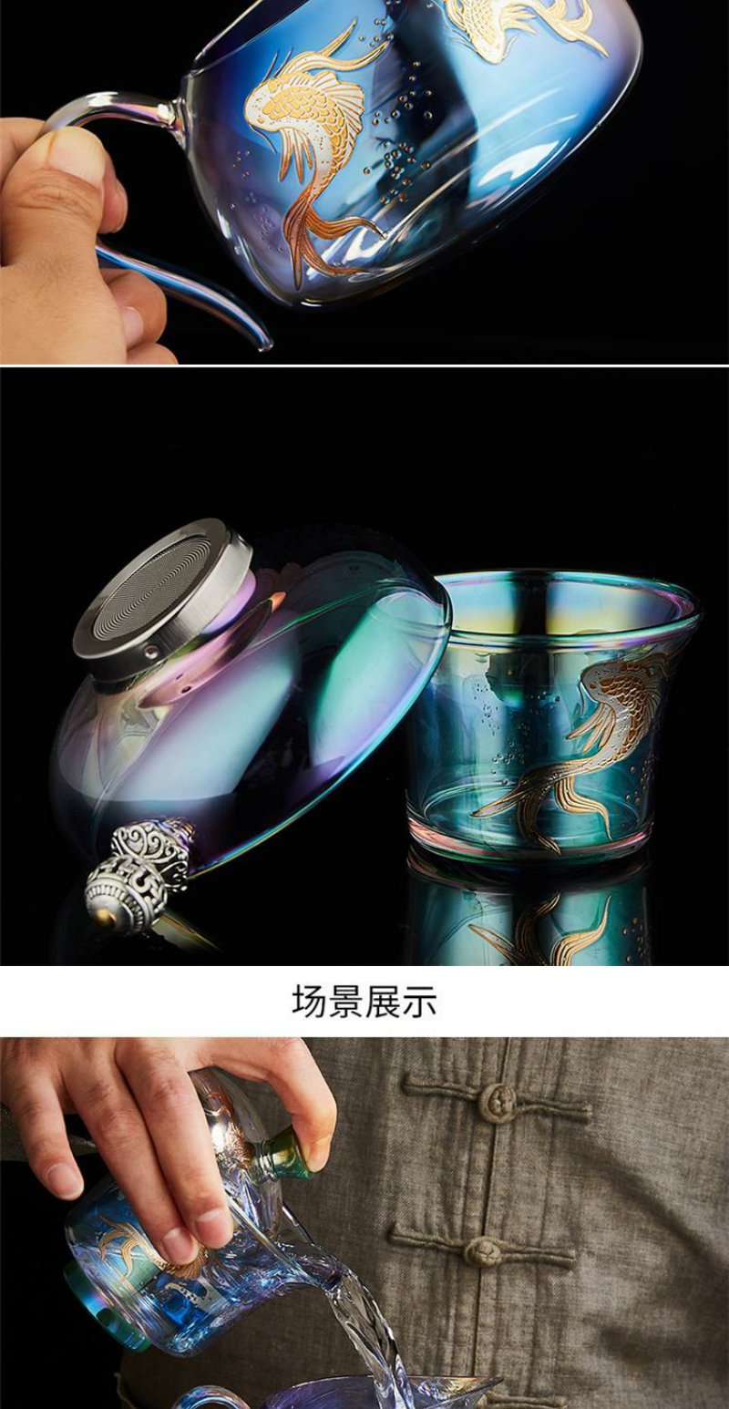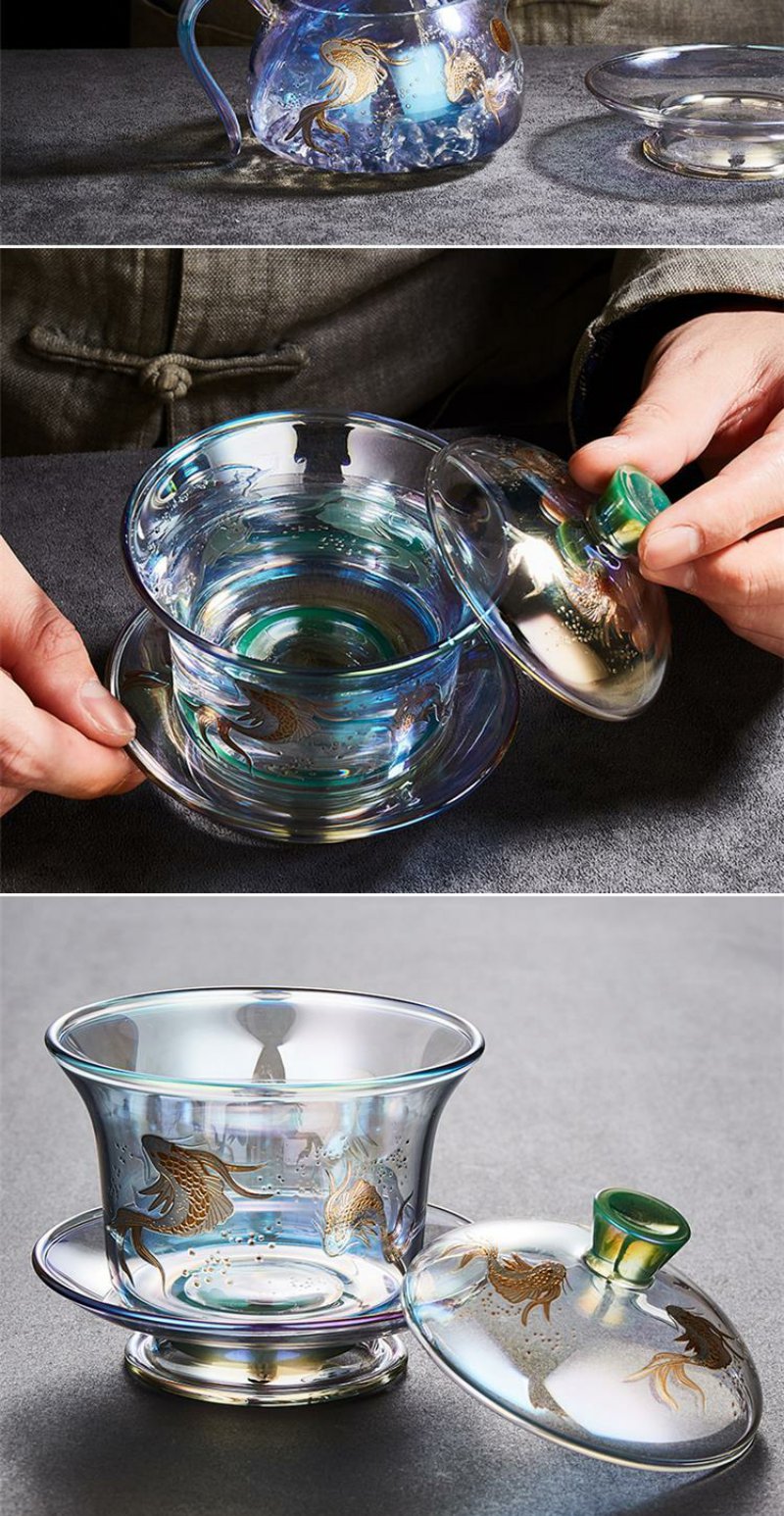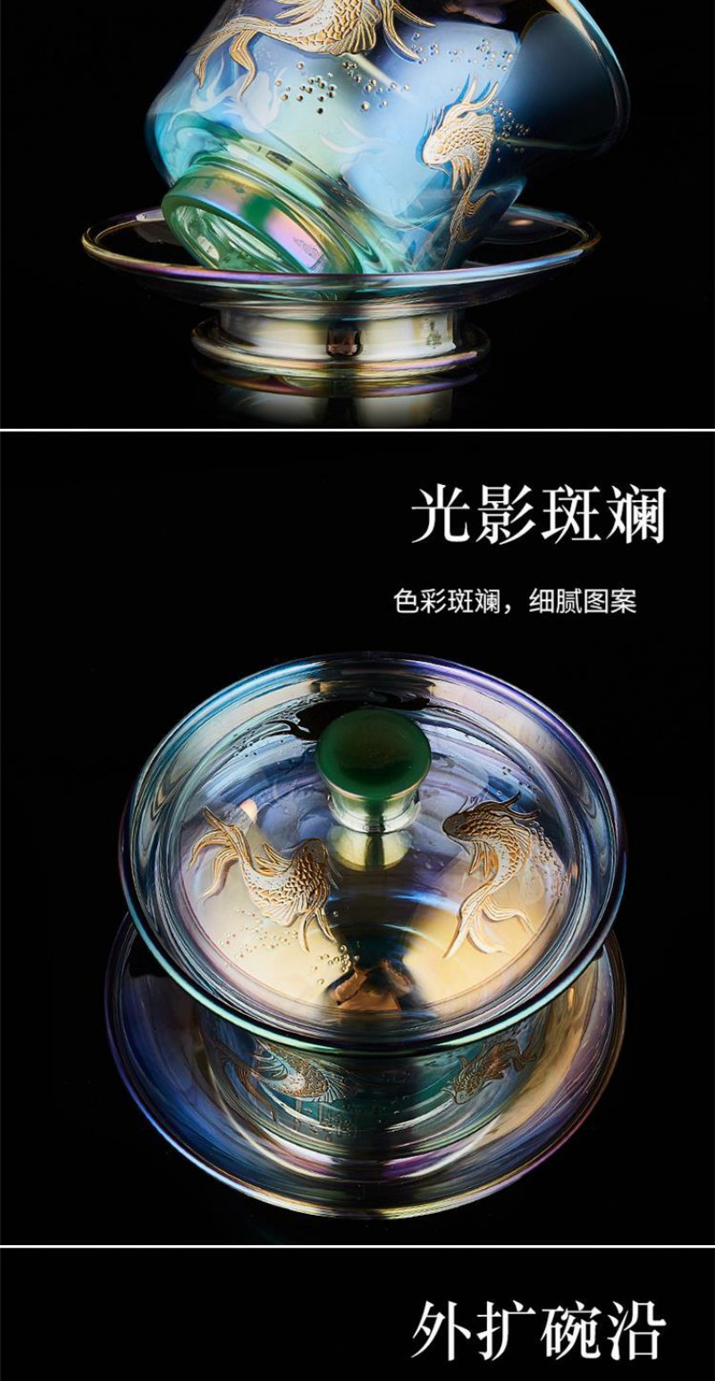容山堂焕彩金银烧玻璃盖碗耐热加厚三才茶碗泡茶杯公道杯茶漏套装