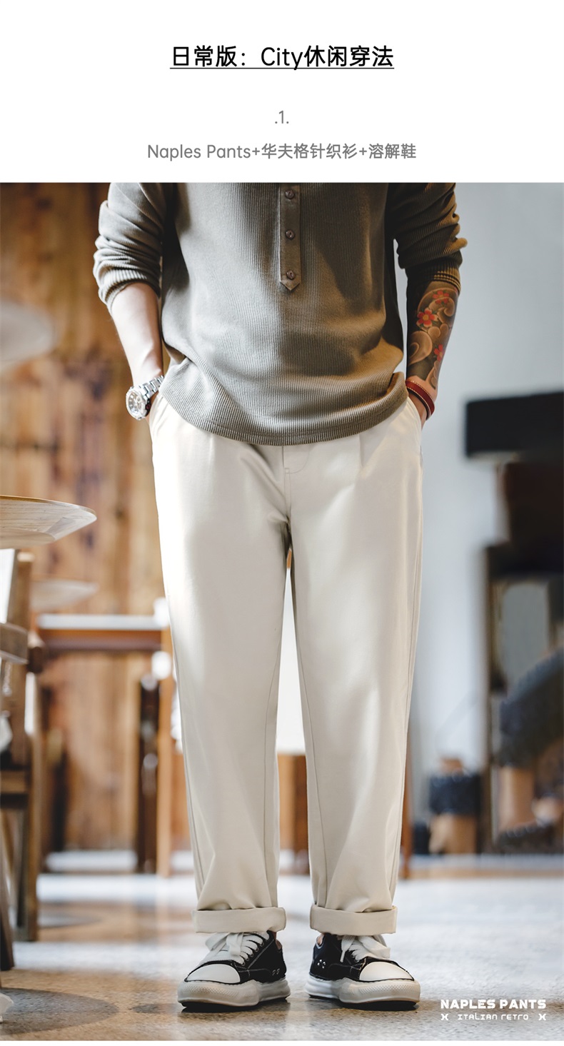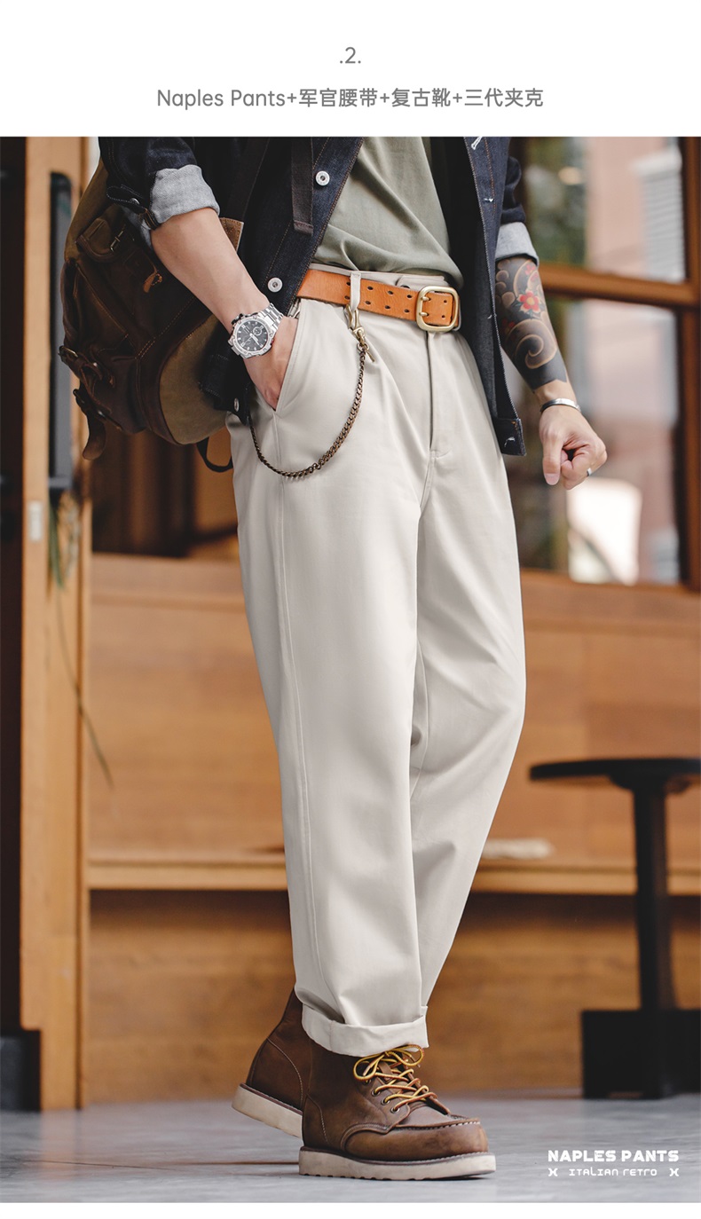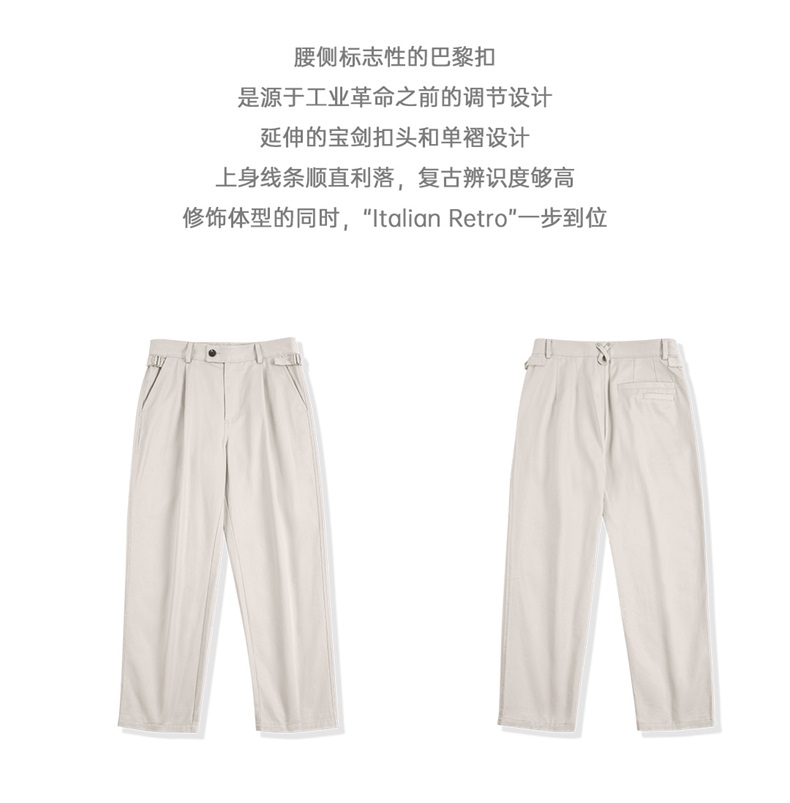 工装优选 美式复古那不勒斯长裤绅士巴黎扣直筒休闲设计感西裤男秋