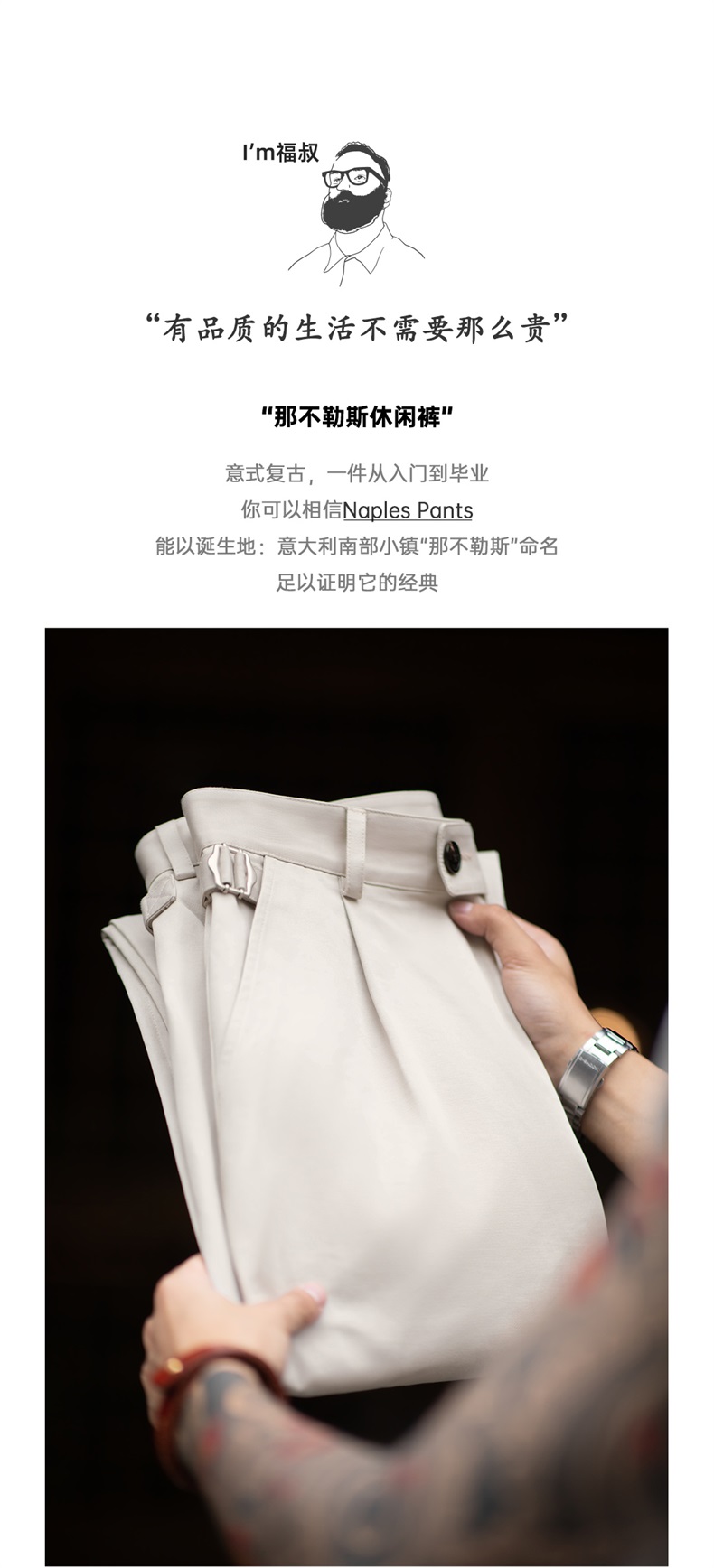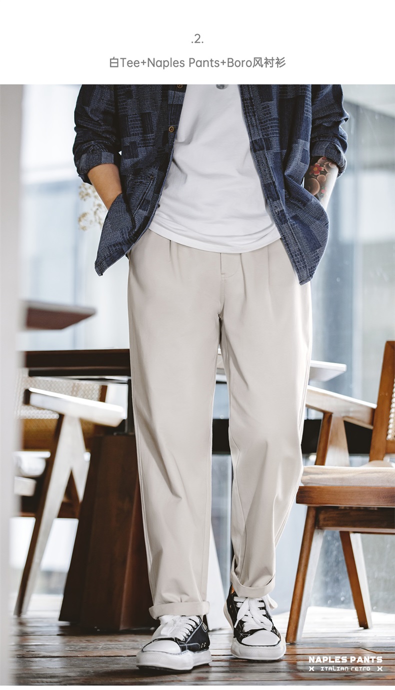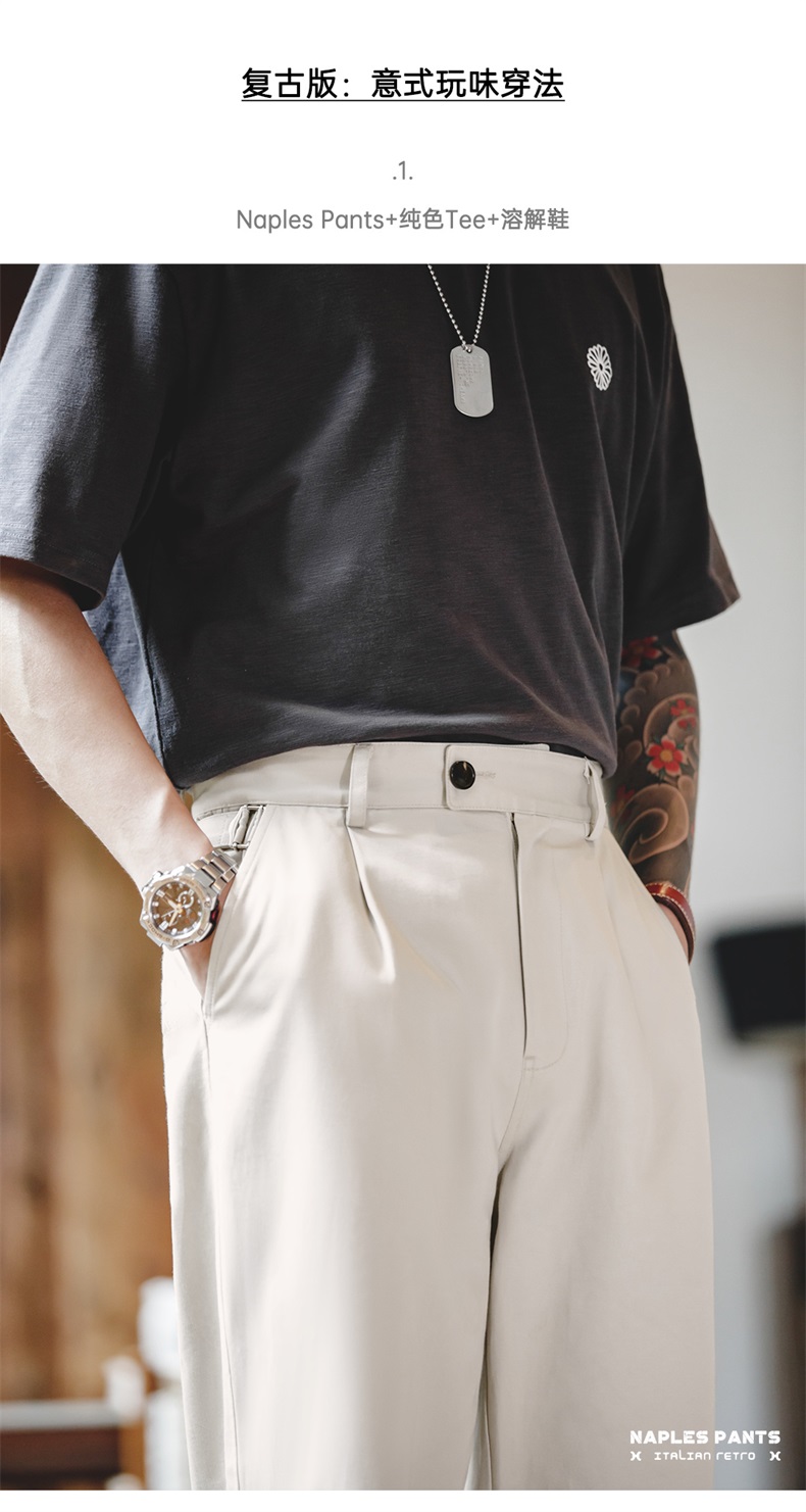 工装优选 美式复古那不勒斯长裤绅士巴黎扣直筒休闲设计感西裤男秋