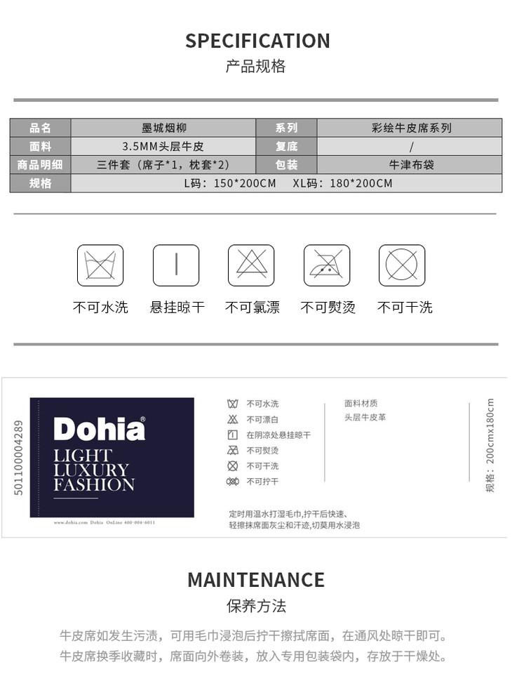 【多喜爱】凉席三件套-牛皮席-墨城烟柳