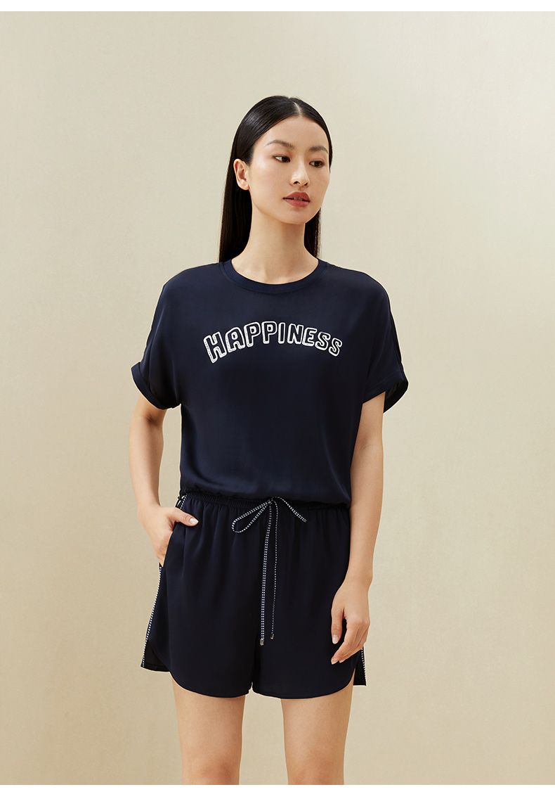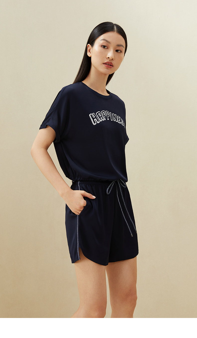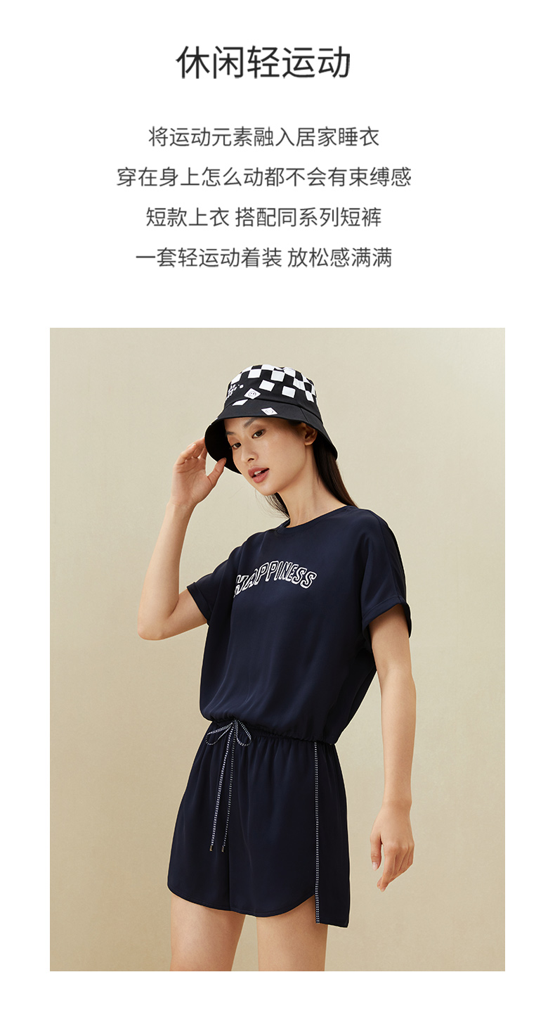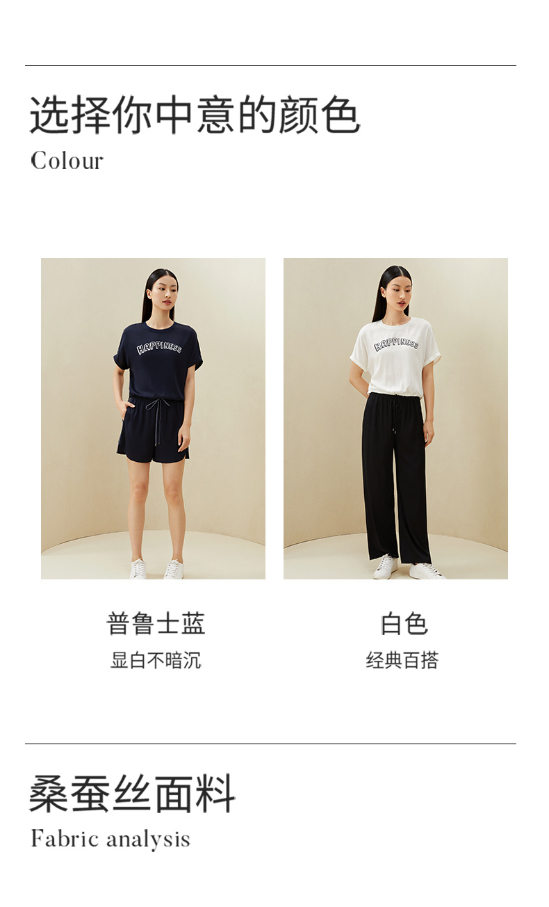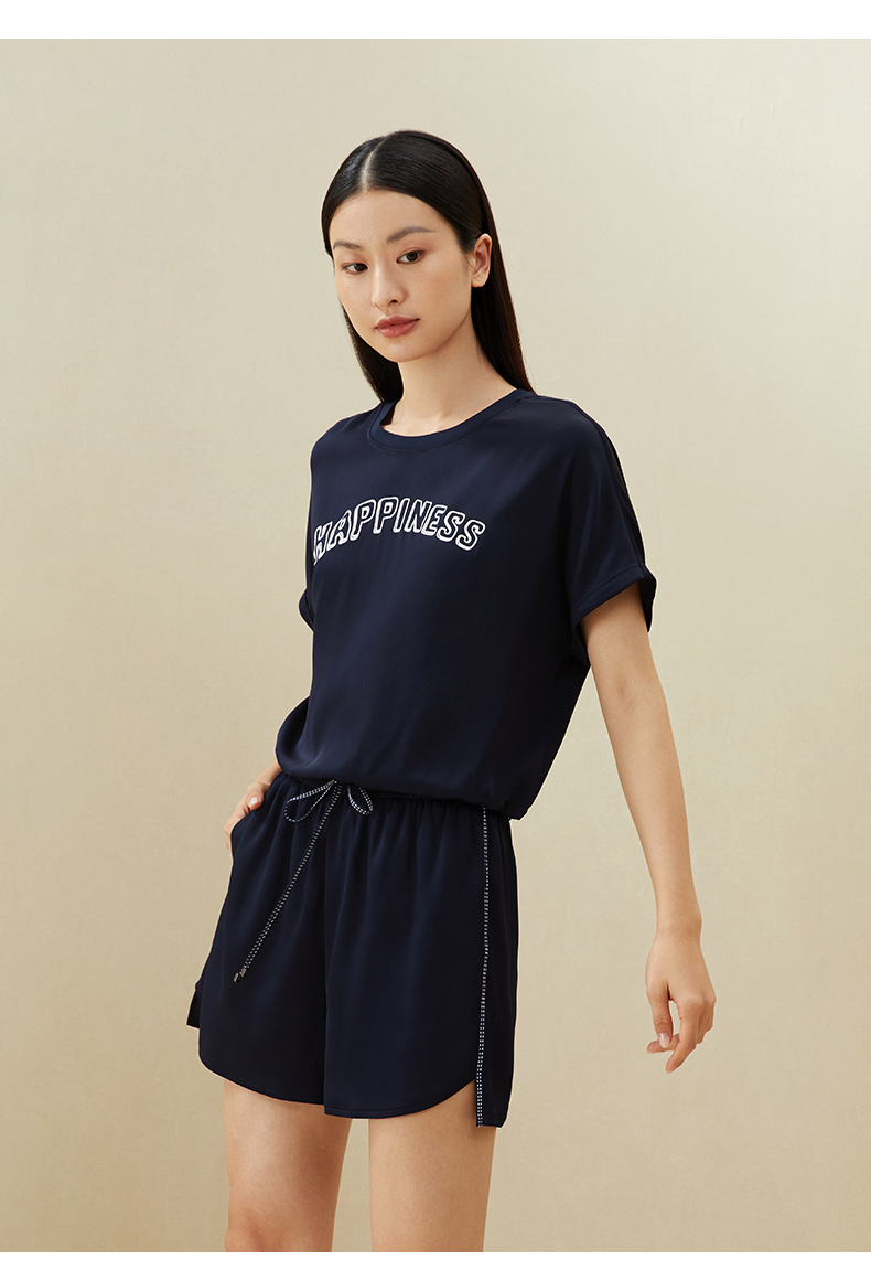 金三塔重磅桑蚕丝弹力缎休闲外穿轻运动短袖小衫短裤套装家居服女 YSFDB702