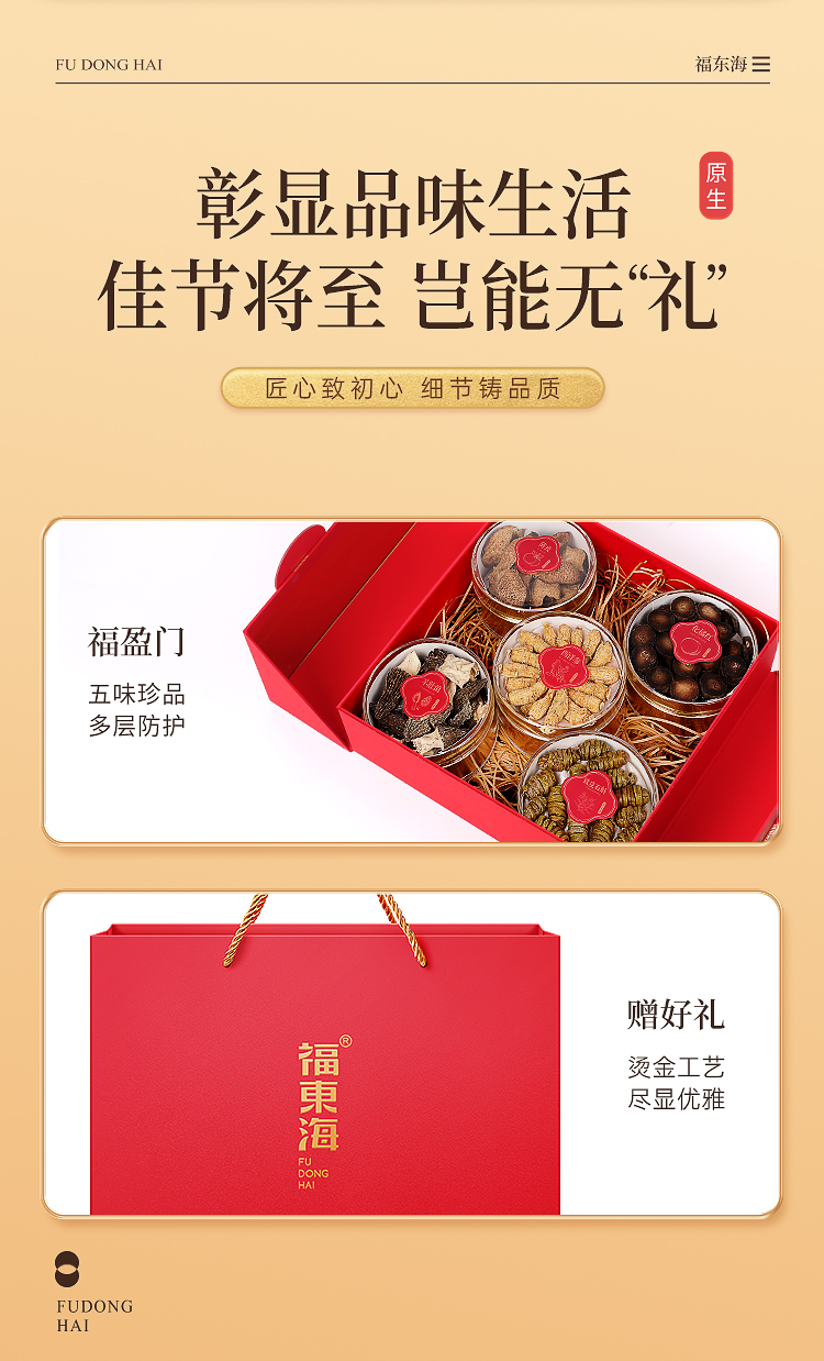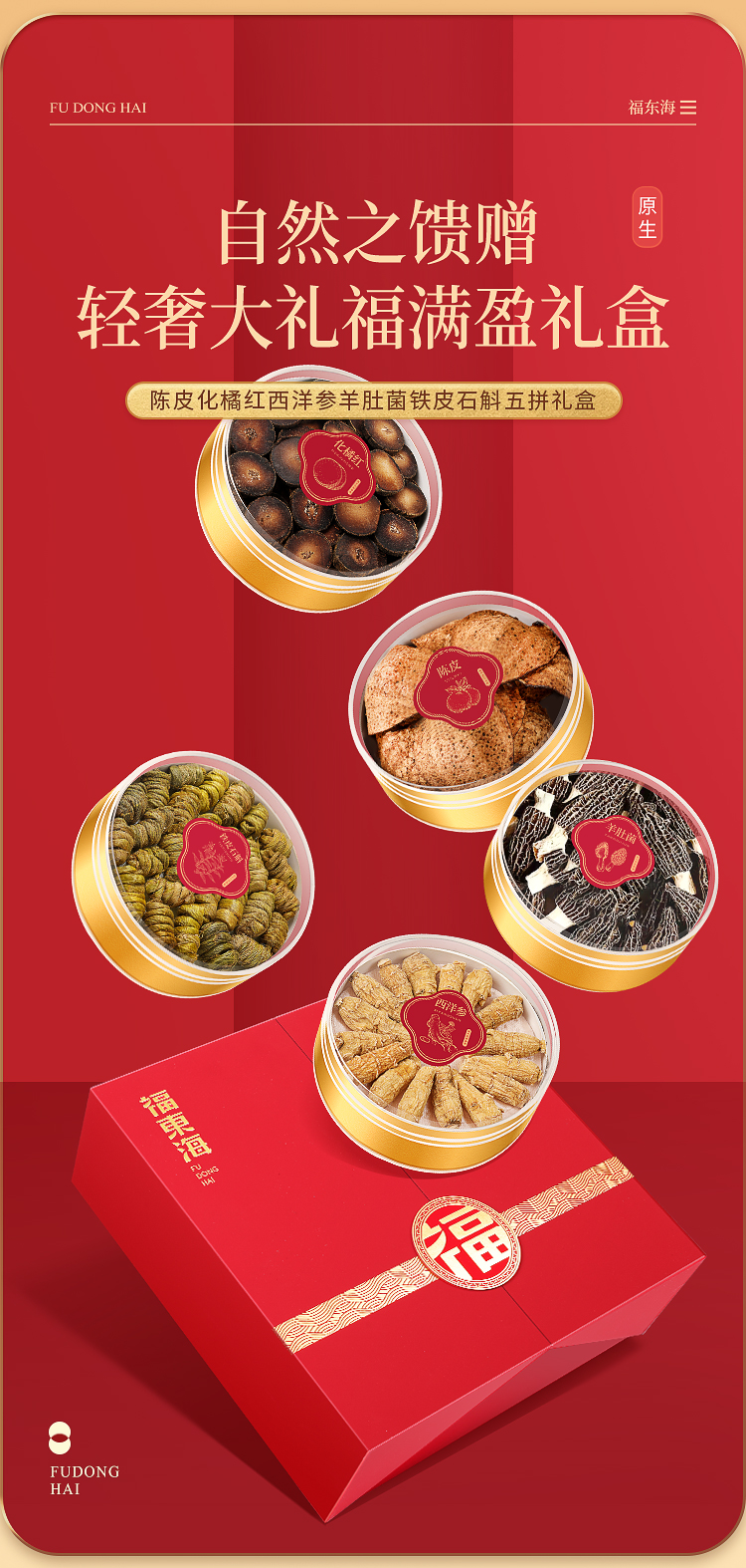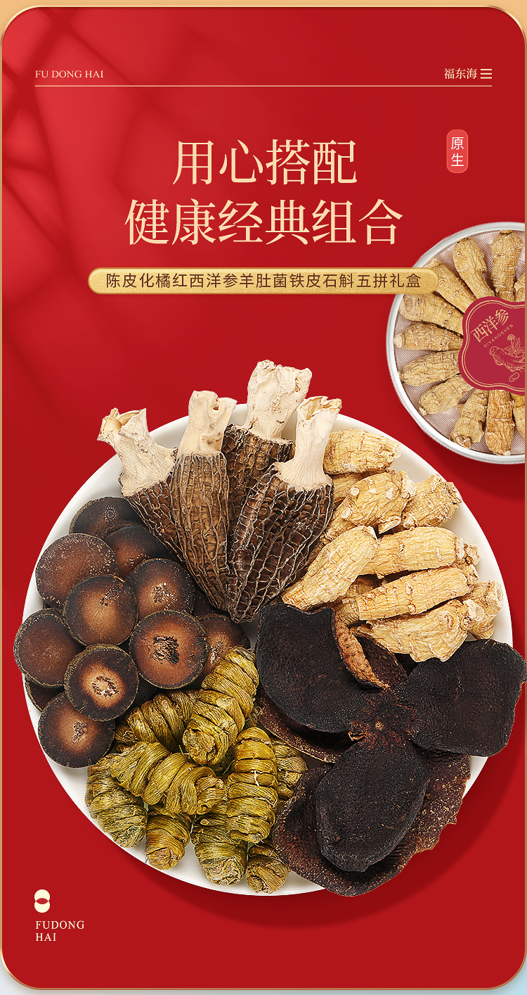 福东海 陈皮化橘红西洋参羊肚菌铁皮石斛五拼 菌菇干货福字礼盒团购送长辈滋补礼品285克