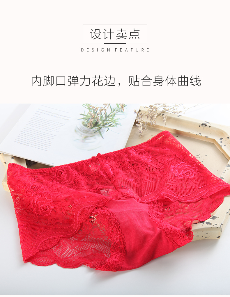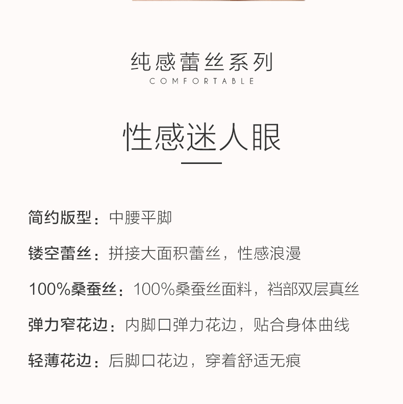 金三塔女真丝中腰透气平角裤性感蕾丝包裹内裤女100%桑蚕丝内裤提臀 NZF7C211
