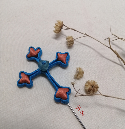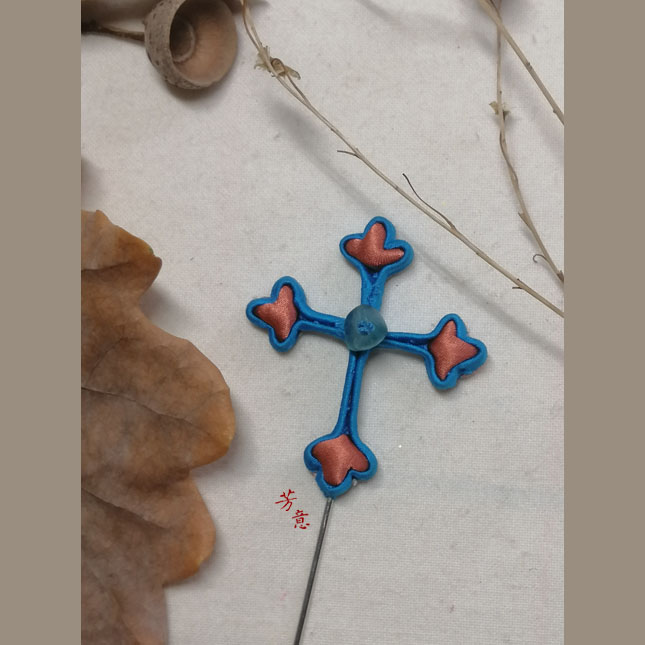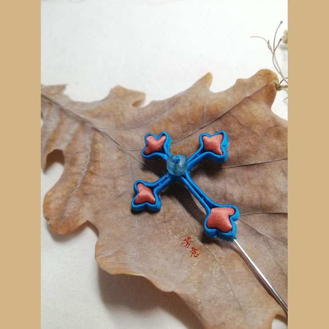 工艺:传统技艺,手工制作。历经近十道工序:真丝预缩熨烫,真丝刮浆,柔软真丝,裁条,折烫,嵌铜丝,塑形固定,嵌芯,固定底托。
