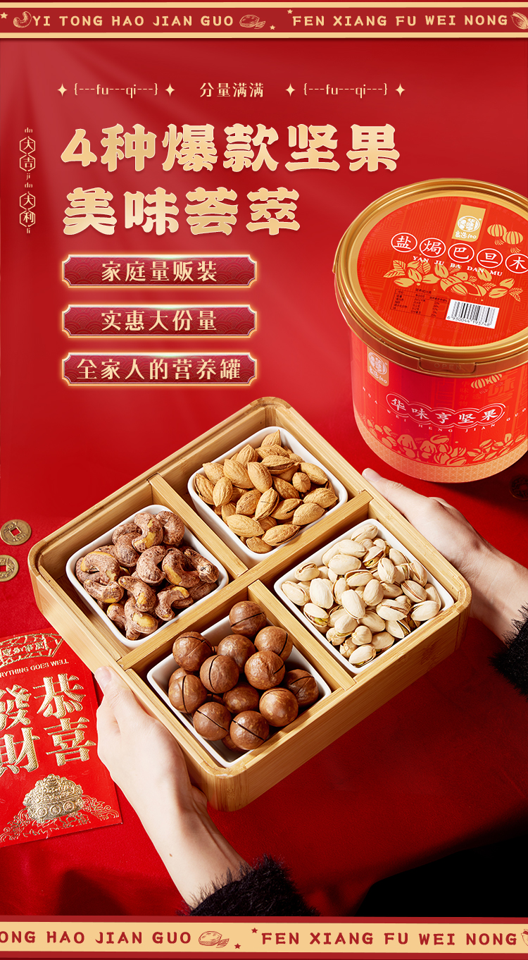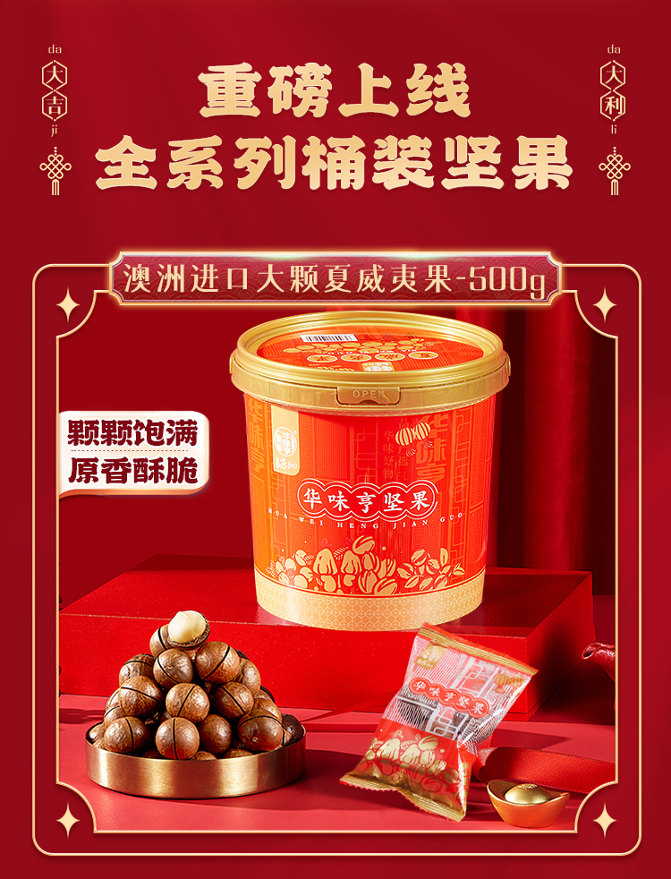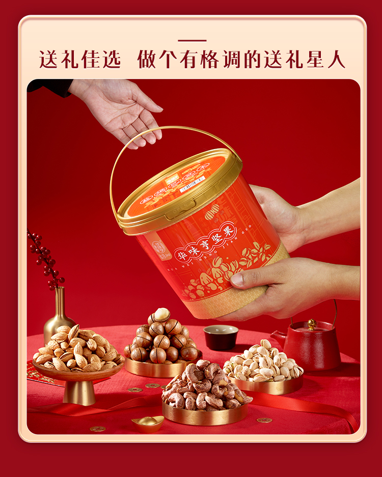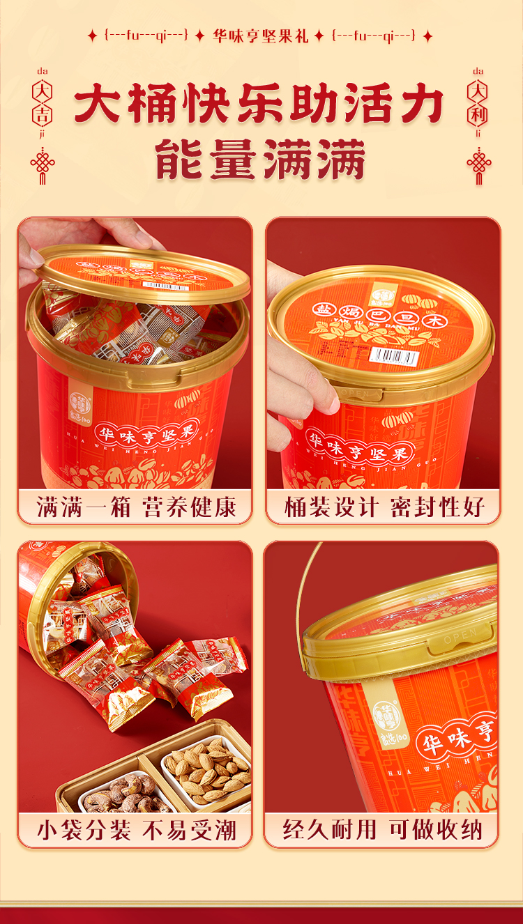 华味亨 四款桶装坚果组合 开心果巴旦木夏威夷果带衣腰果年货礼盒 4款甄选坚果(共4斤)