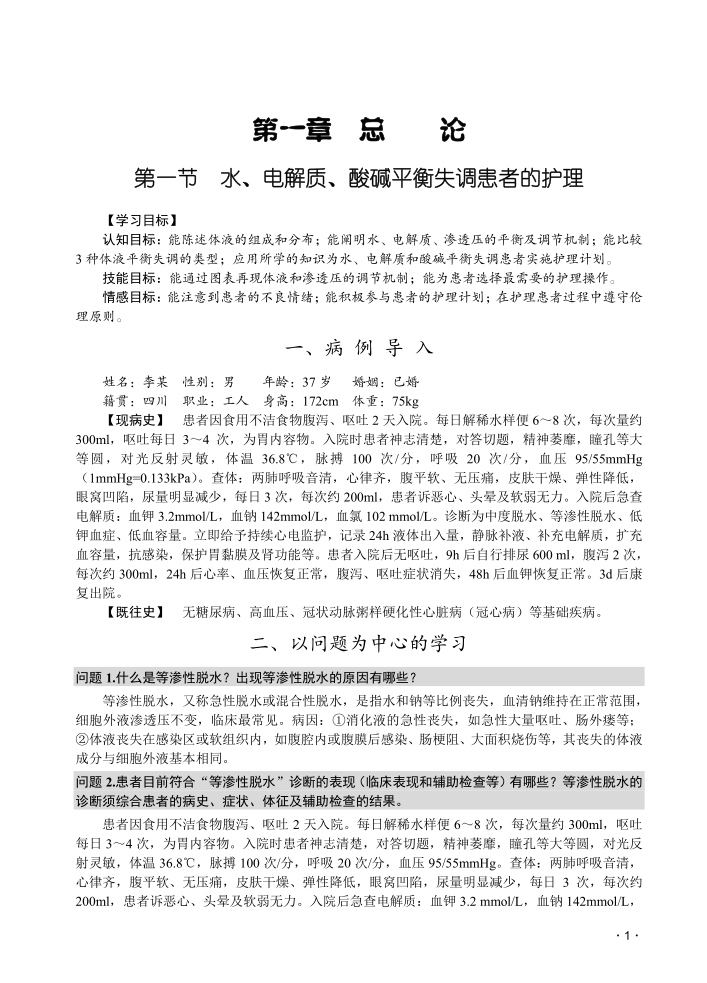 第一节 水、电解质、酸碱平衡失调患者的护理 1
