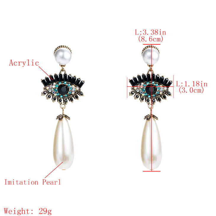 〖复古气质个性耳钉〗欧美夸张亚克力镶钻眼睛珍珠耳坠耳环女复古气质个性耳饰earrings