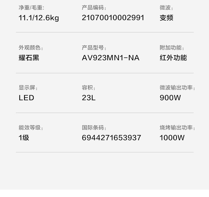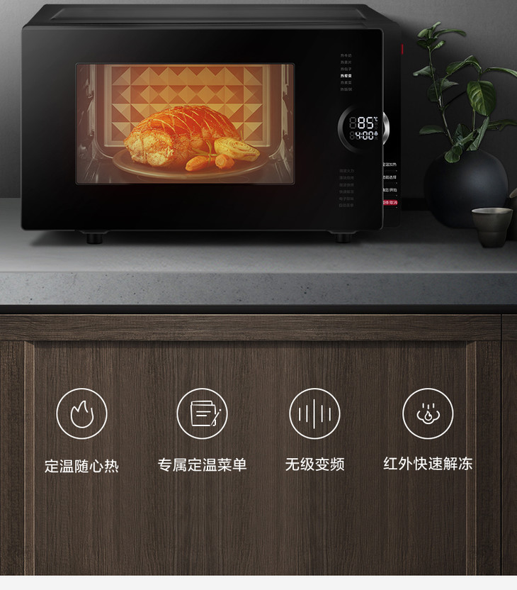 美的(Midea)定温热微波炉家用变频光波烧烤红外测温调控温度一级能效23L PC23C3 曜石黑