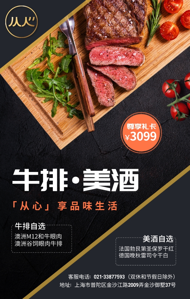 【3099元·尊享自选礼卡】牛排+葡萄酒·二选一组合