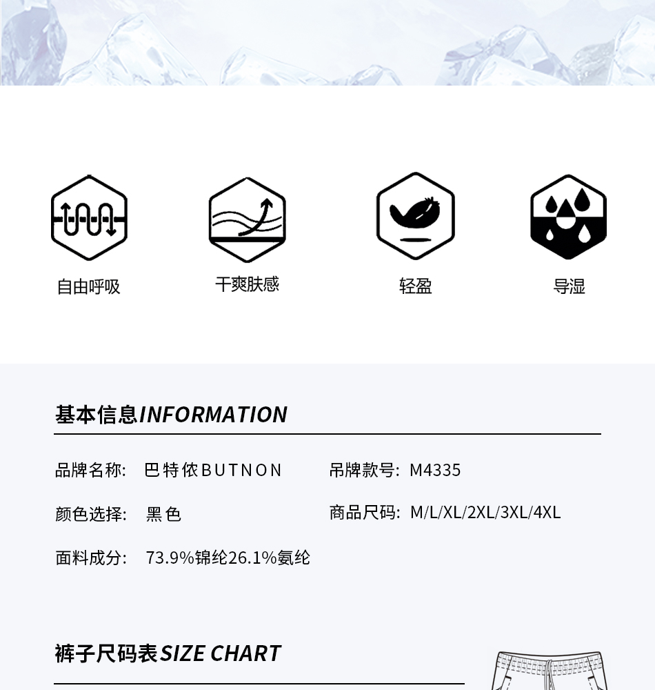 巴特侬4335男士梭织七分裤运动裤夏季新品