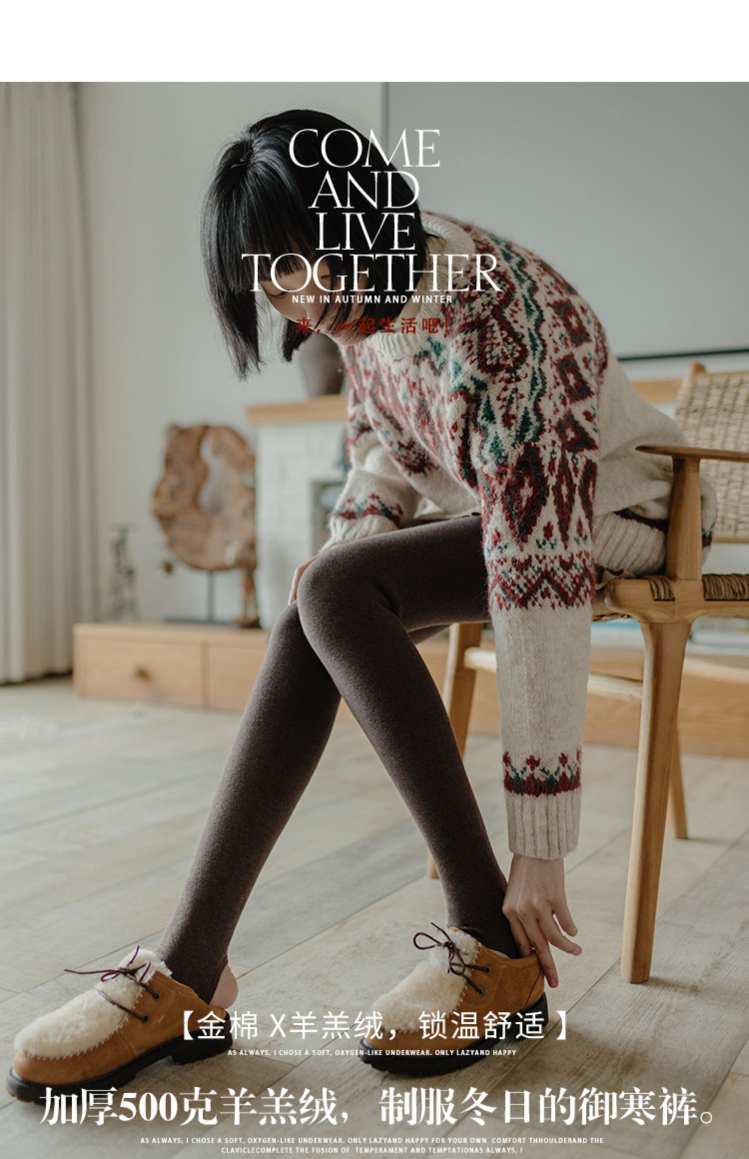 靴下物500g羊羔绒保暖连裤袜加绒加厚踩脚黑灰色打底袜冬季棉裤