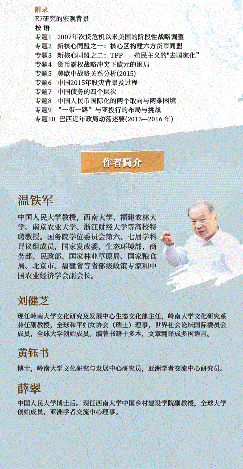 在编辑这本书的过程中,温老师曾经说:金融全球化的发展来到了历史性的十字路口,这于中国来说既是机遇也是考验,对于这个历史的演变过程,如果我们连了解都做不到,又何谈从容应对呢?”几句淡淡的话语背后,透露出来的是一位古稀老人内心深处的紧迫感……