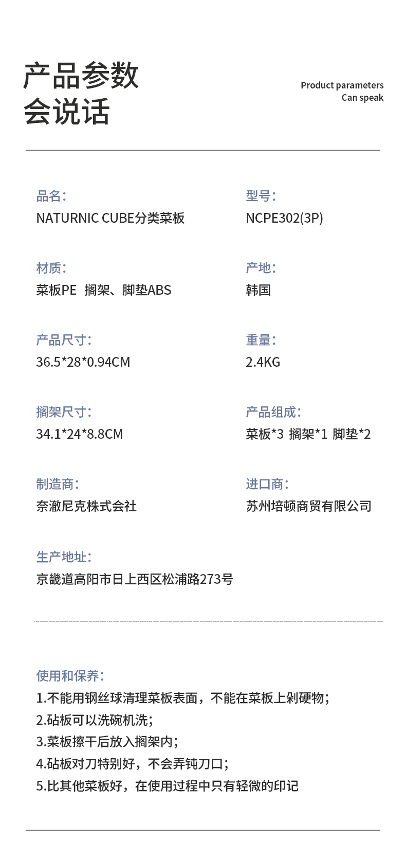 韩国 NATURNIC PE家用分类防滑菜板整套 生熟分开/抑菌安全卫生
