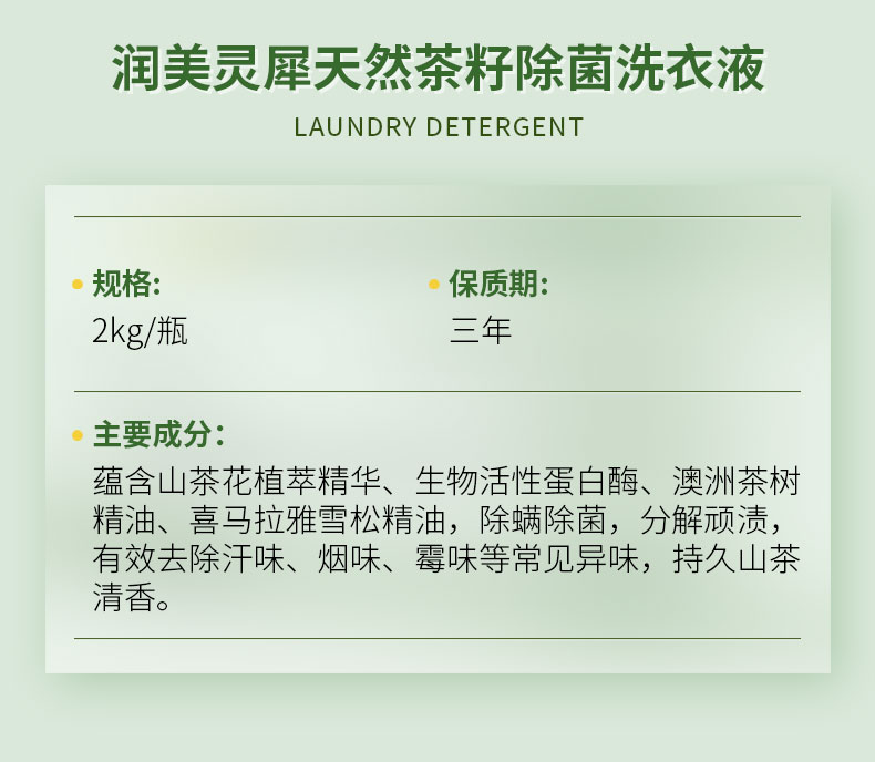 润美灵犀天然茶籽除菌洗衣液2kg桶装