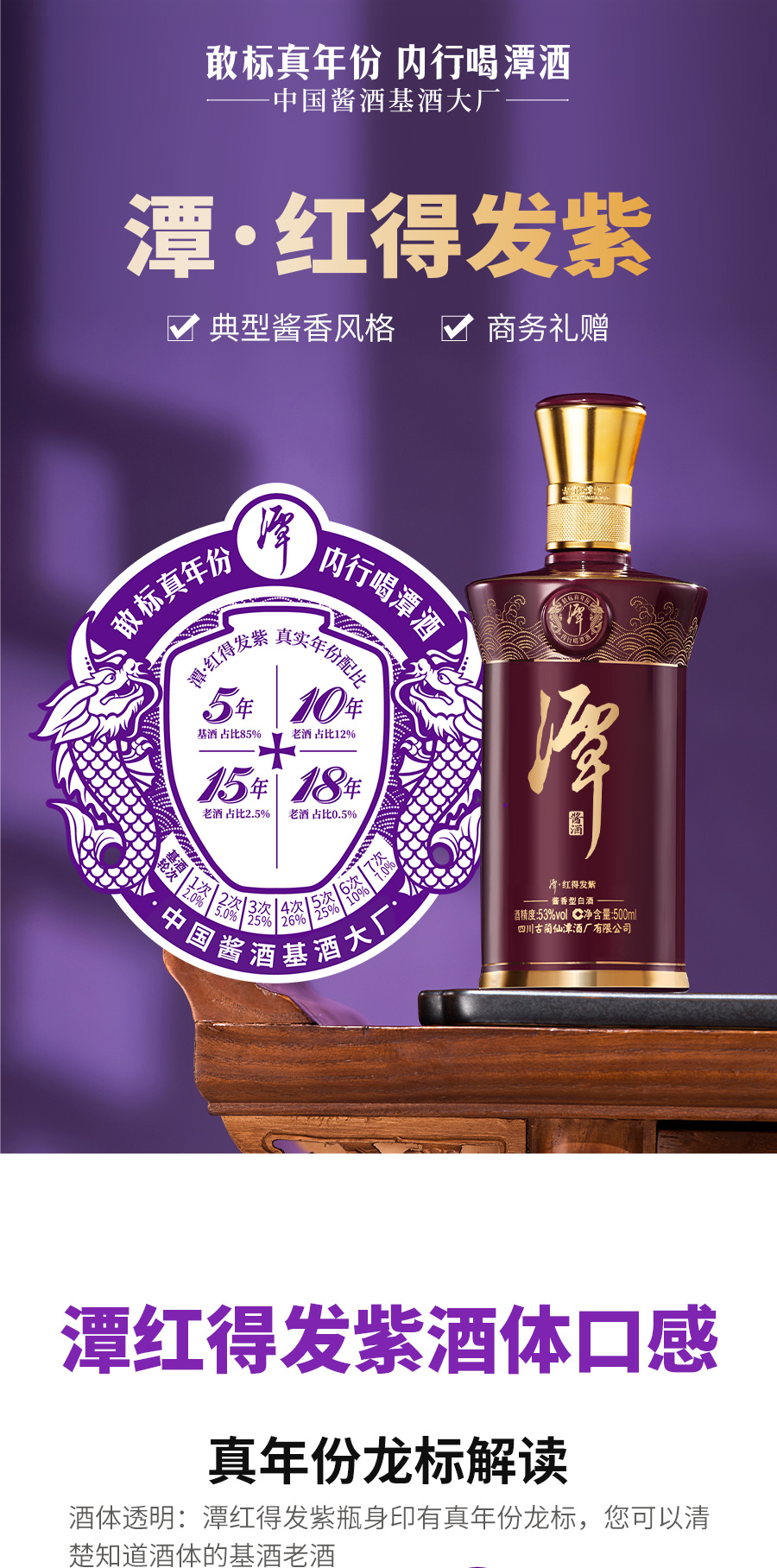 【扫码有奖】潭酒 红得发紫酱香型白酒 500ml(53度)