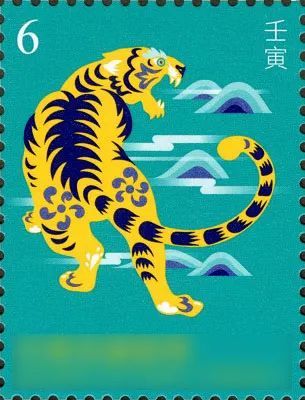 第一枚邮票(面值6元):以“虎跃山雄势,福气富满堂”意念,祝福虎年大吉大利,大显身手。