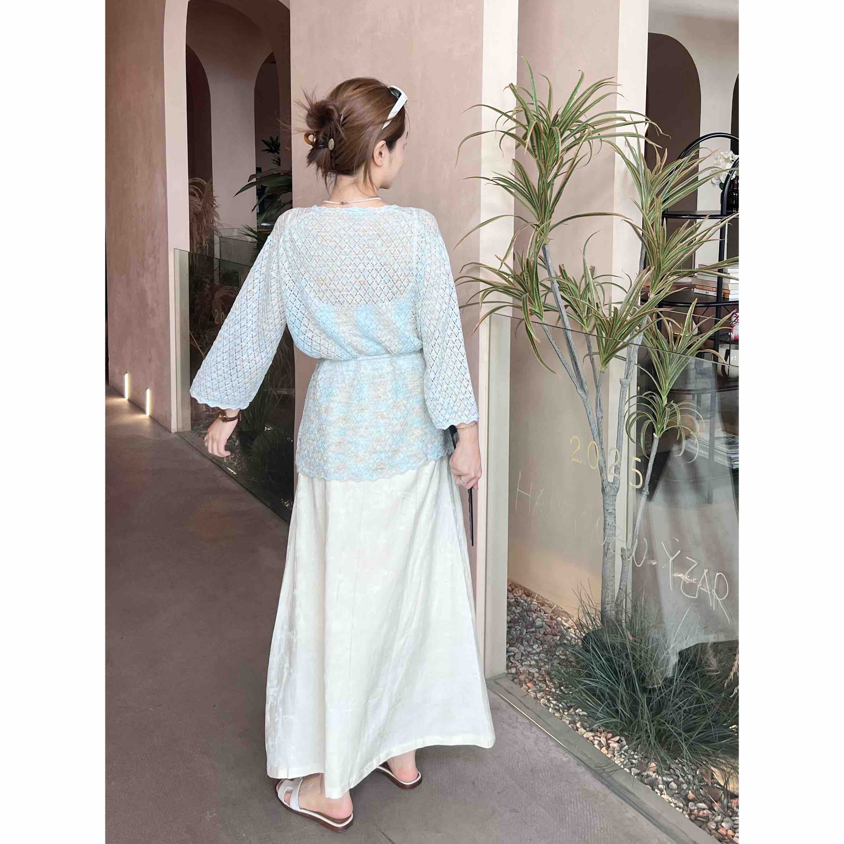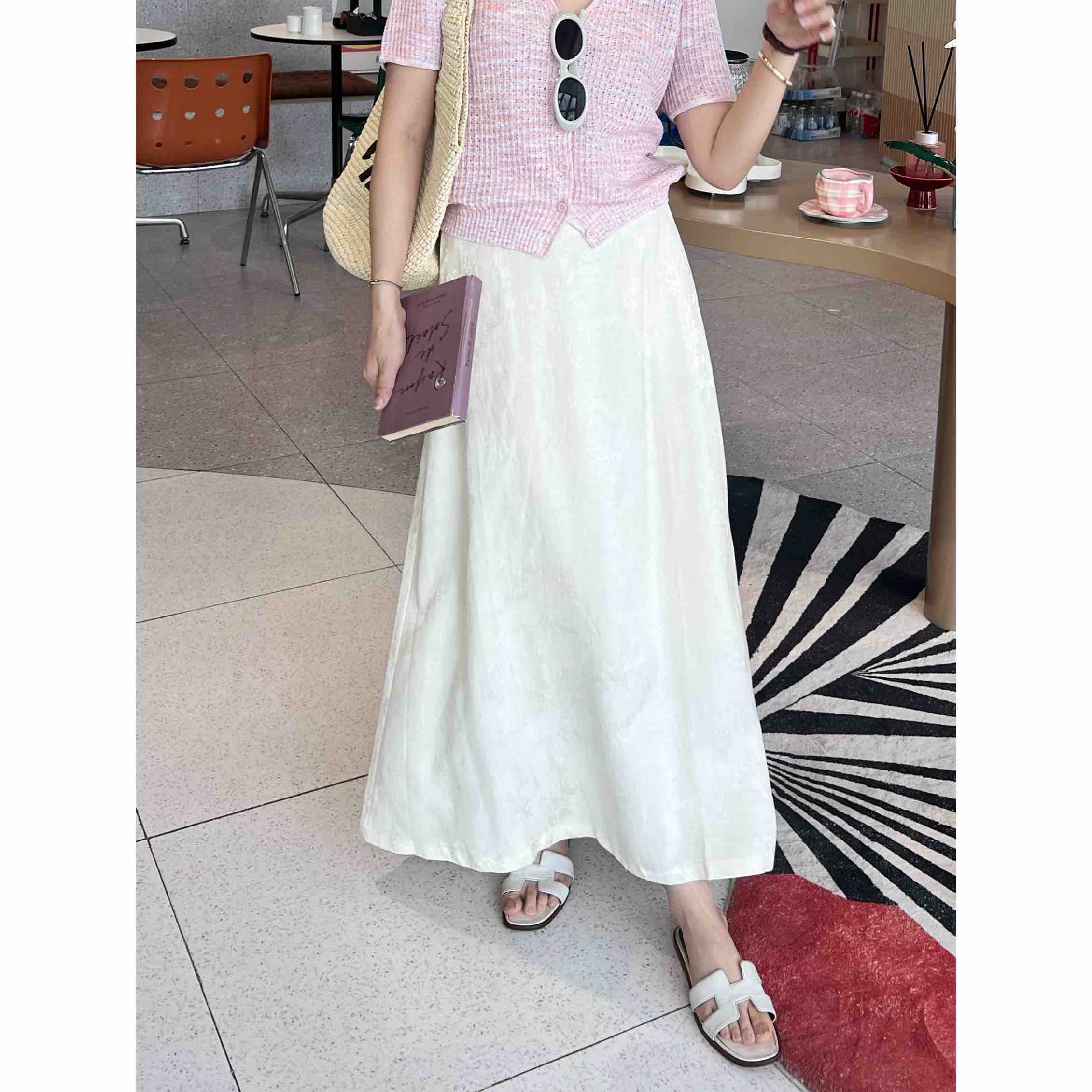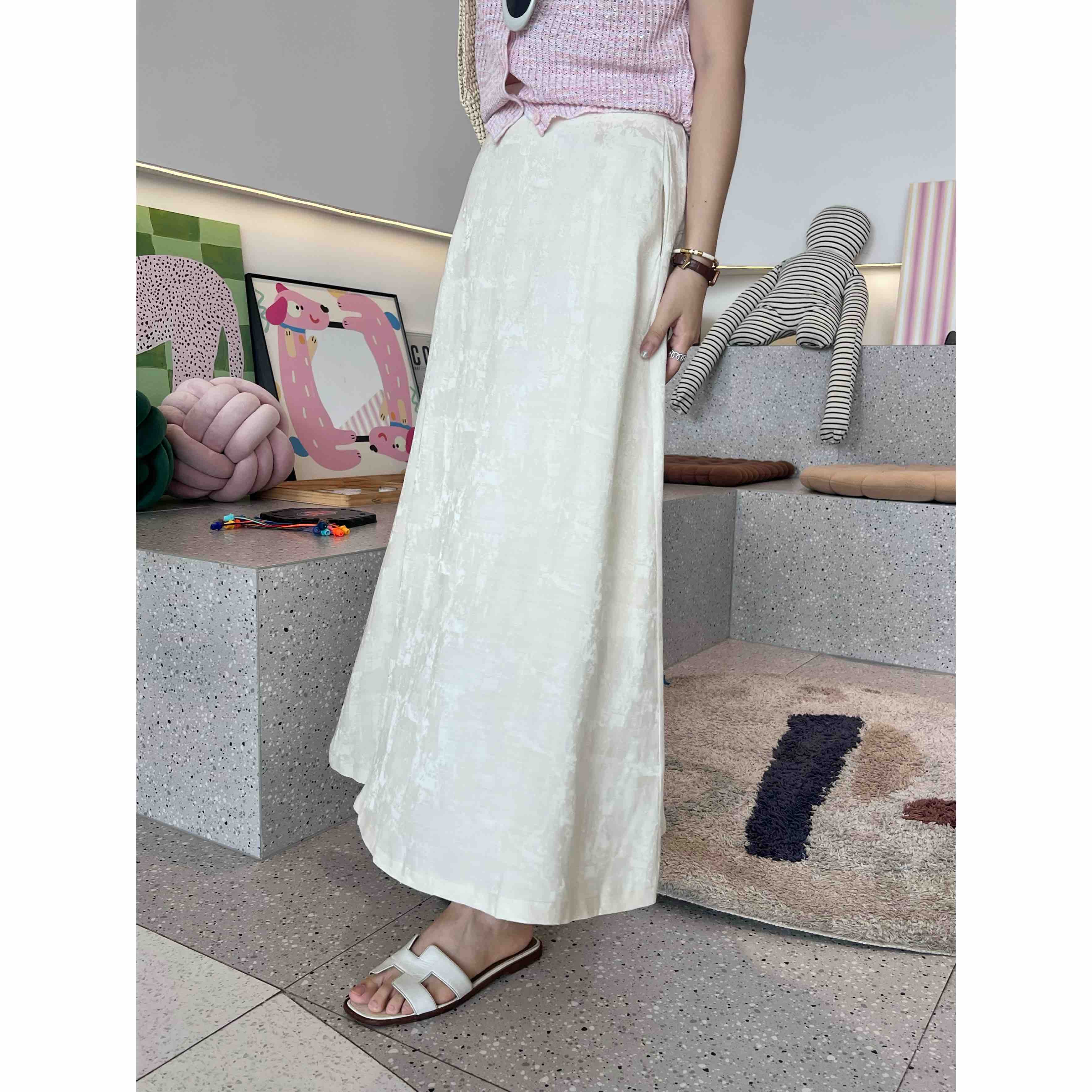 2507406 亚麻混纺 提花A字 长裙 国风气质