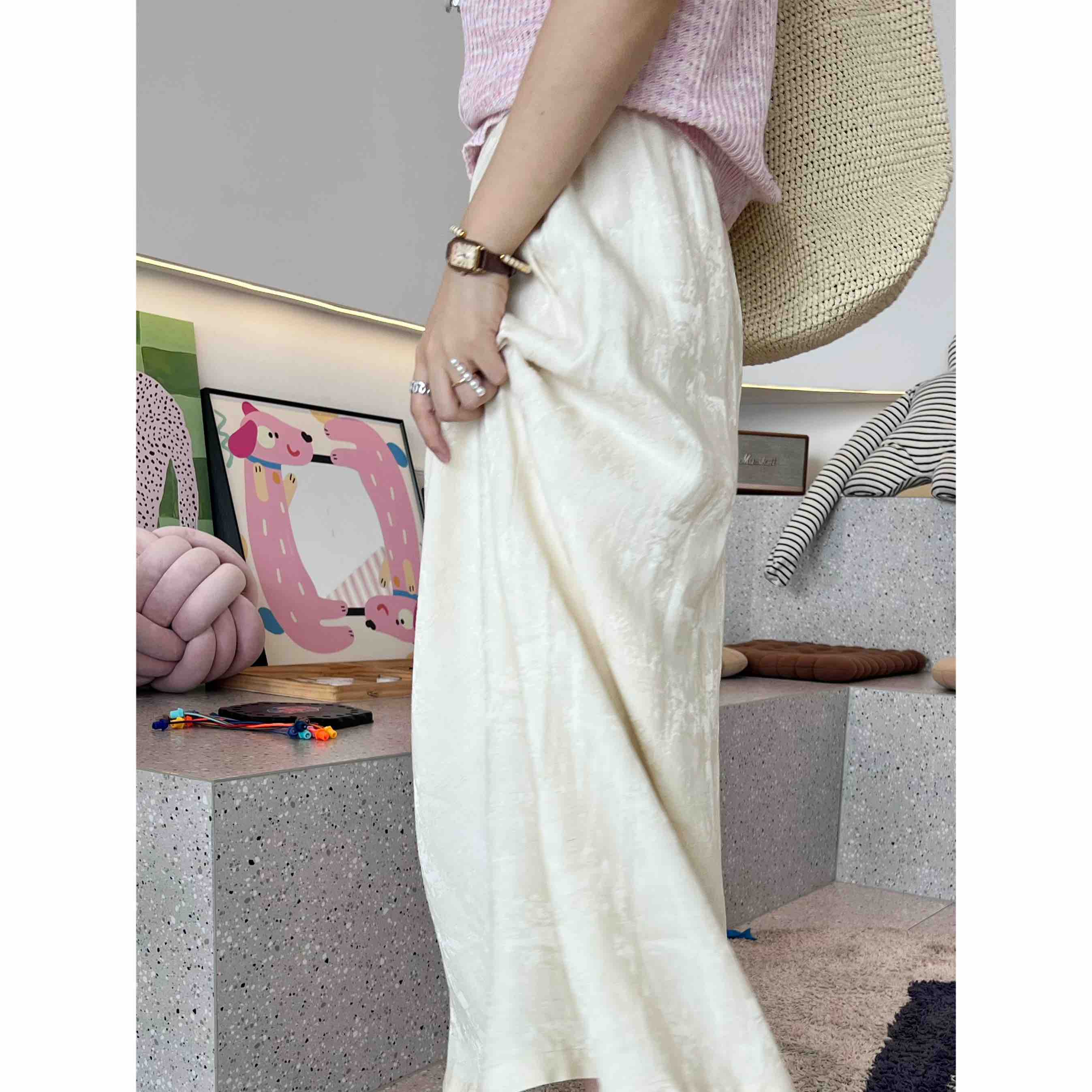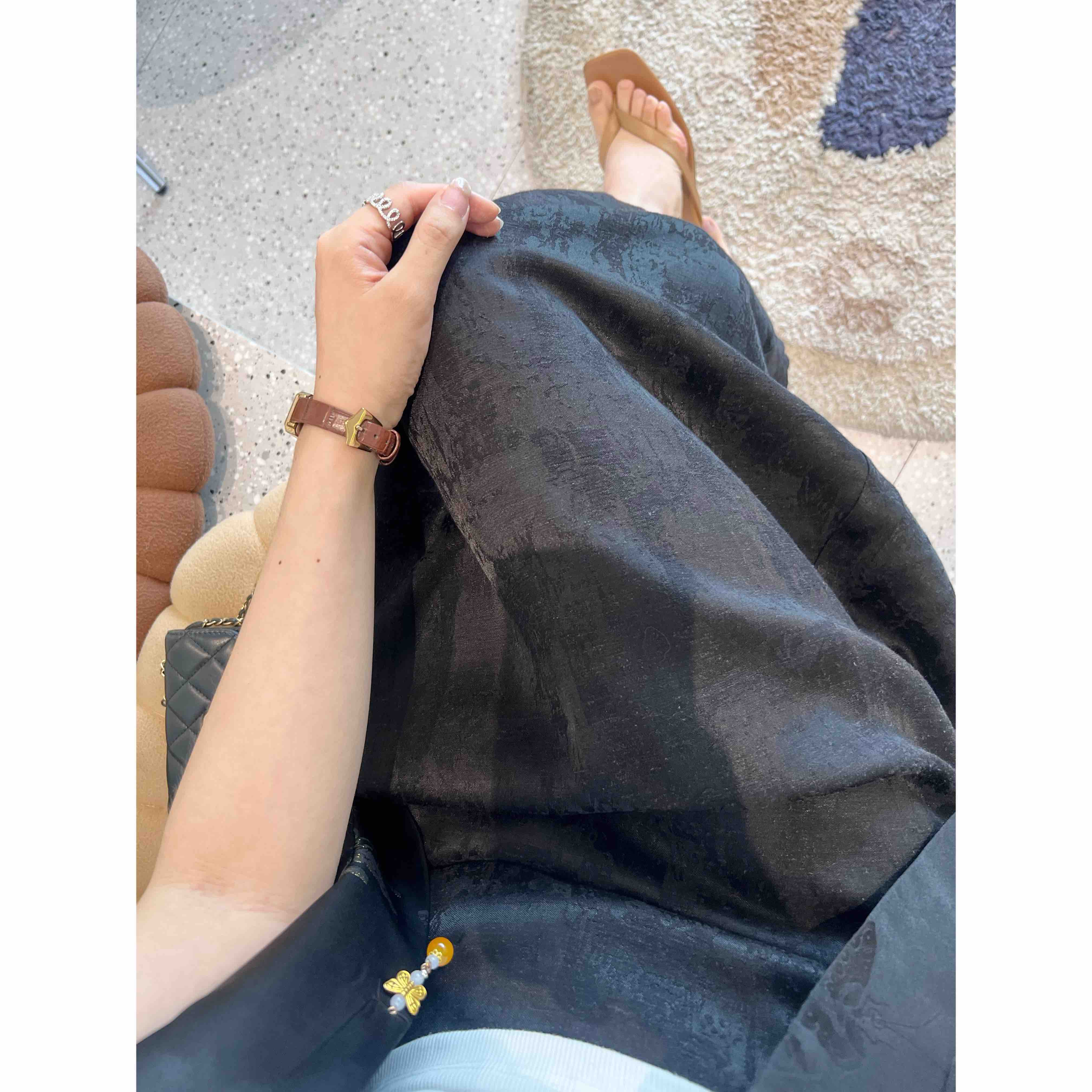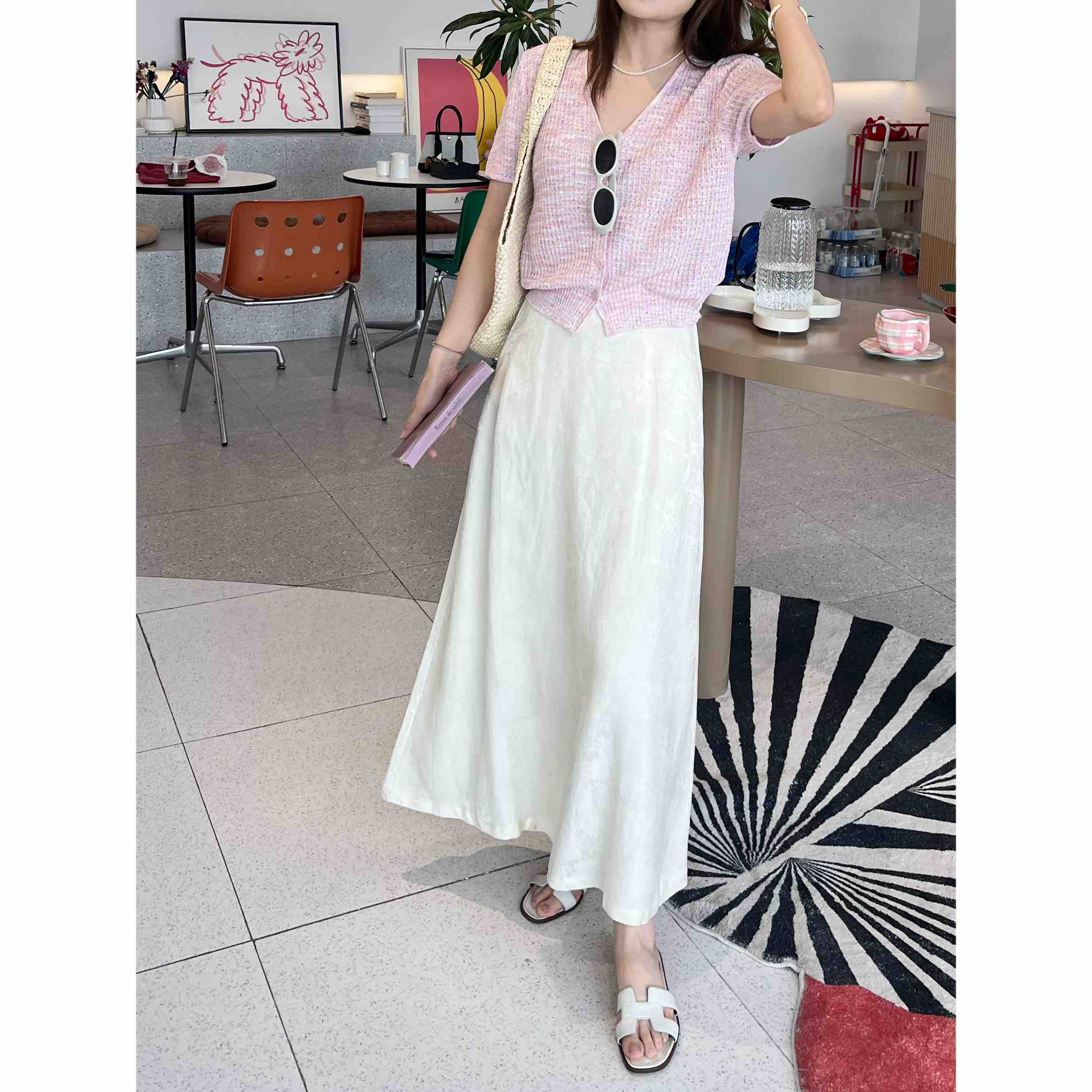2507406 亚麻混纺 提花A字 长裙 国风气质