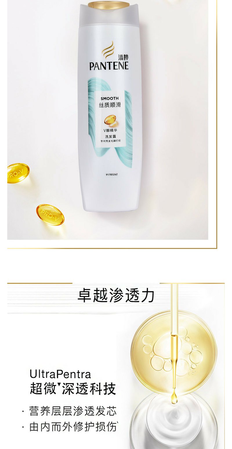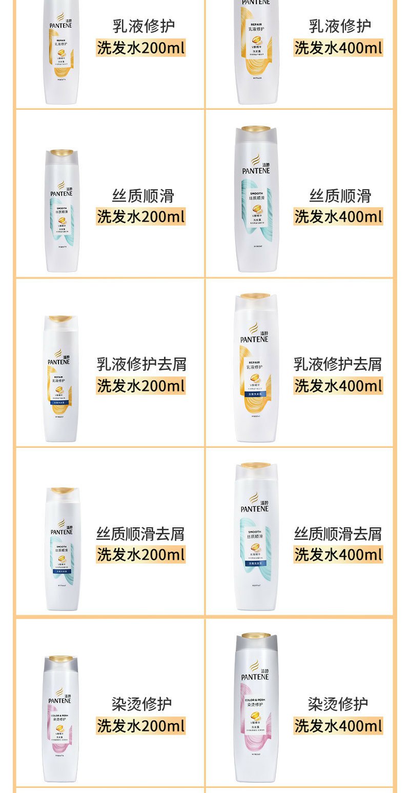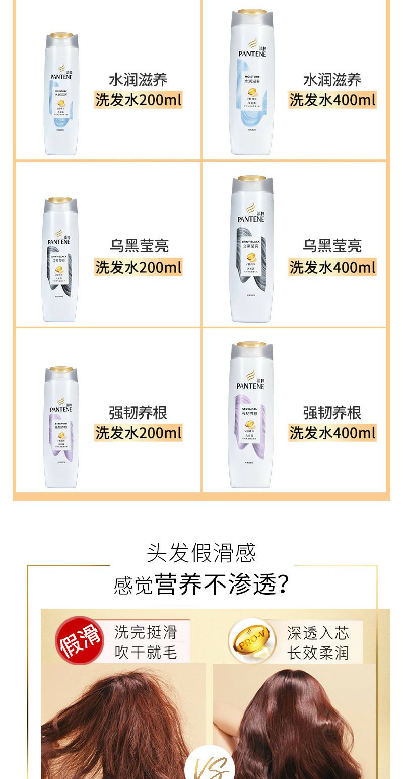 潘婷洗发水【丝质顺滑】洗发露400ml/瓶洗发水强韧养根干枯柔顺