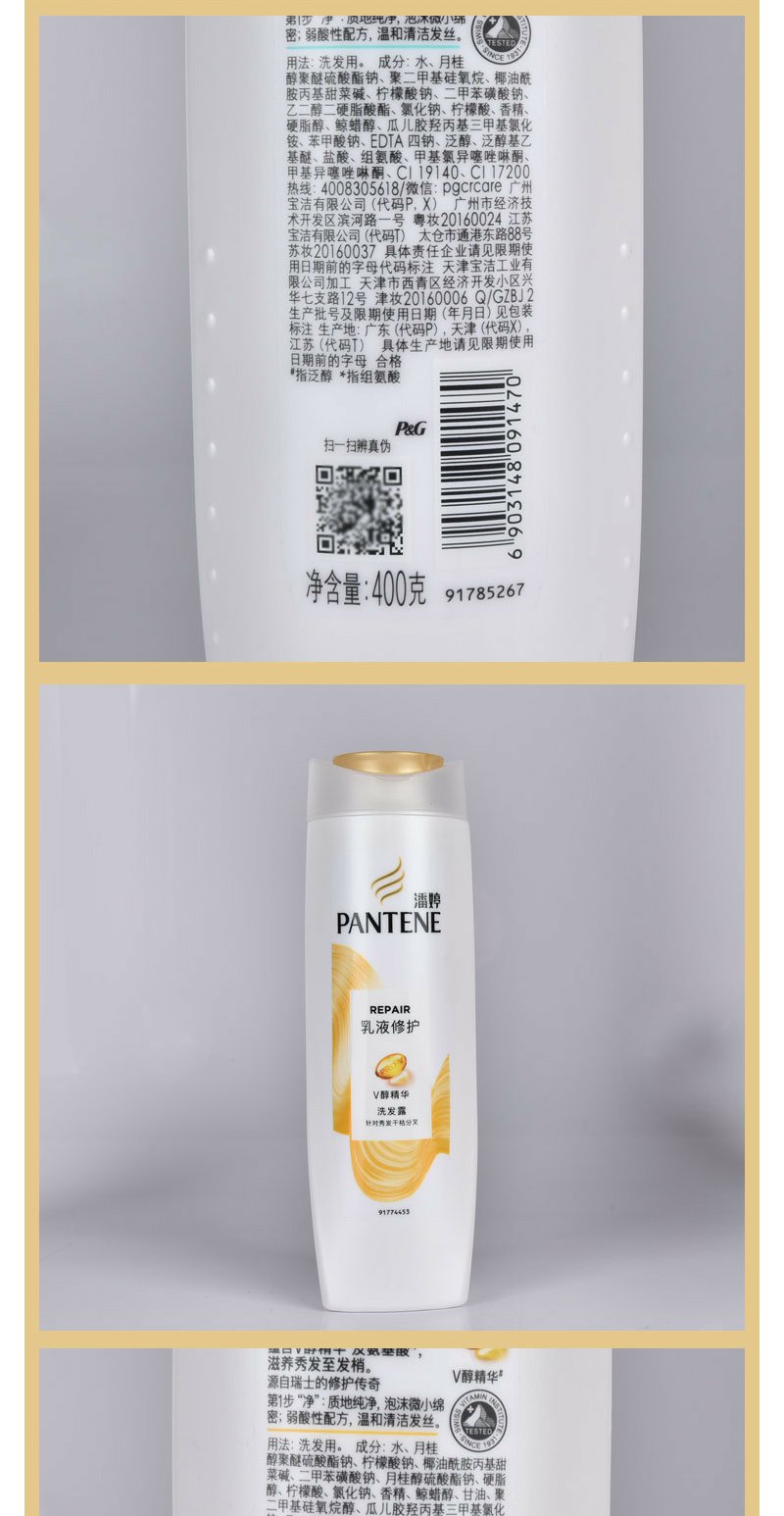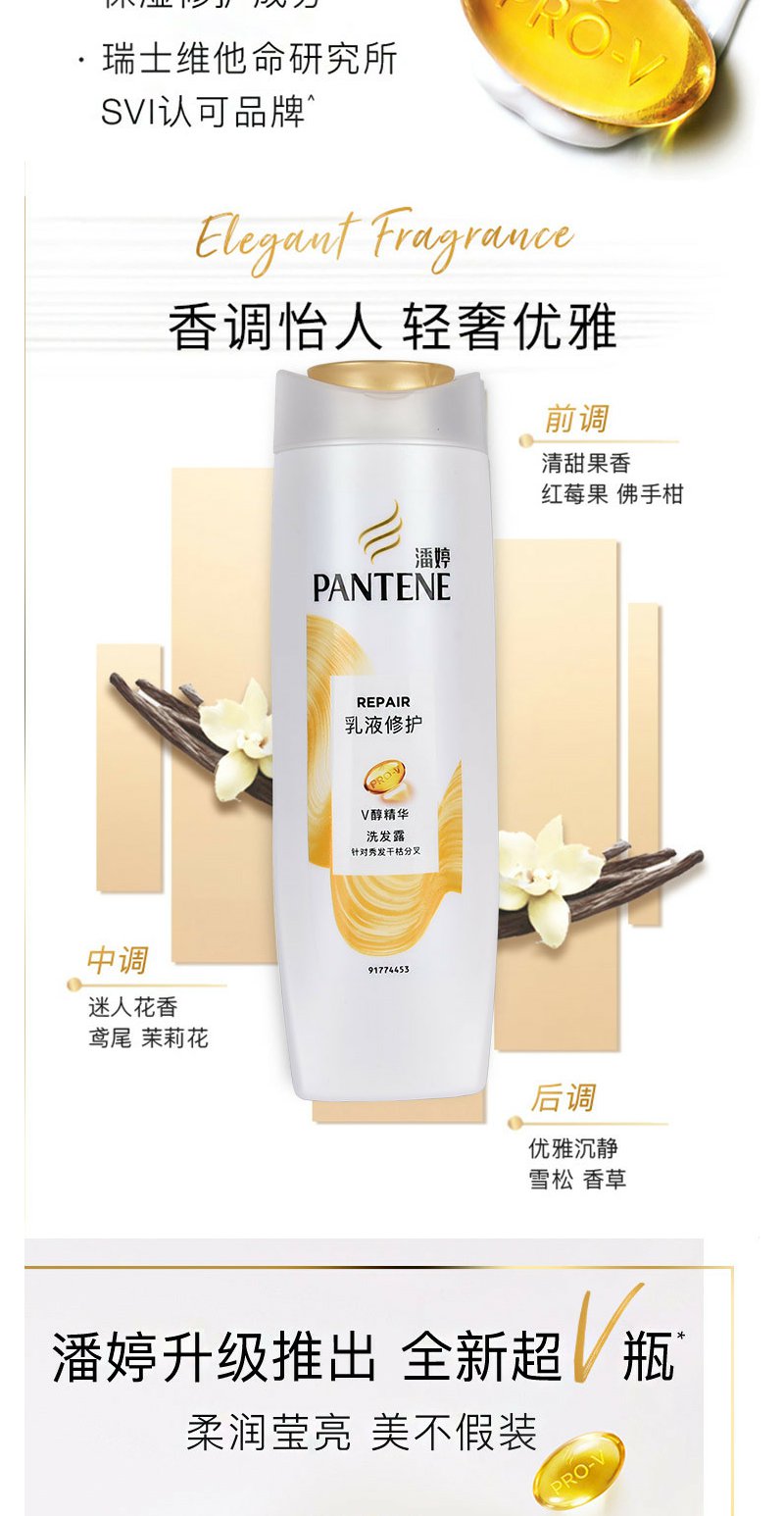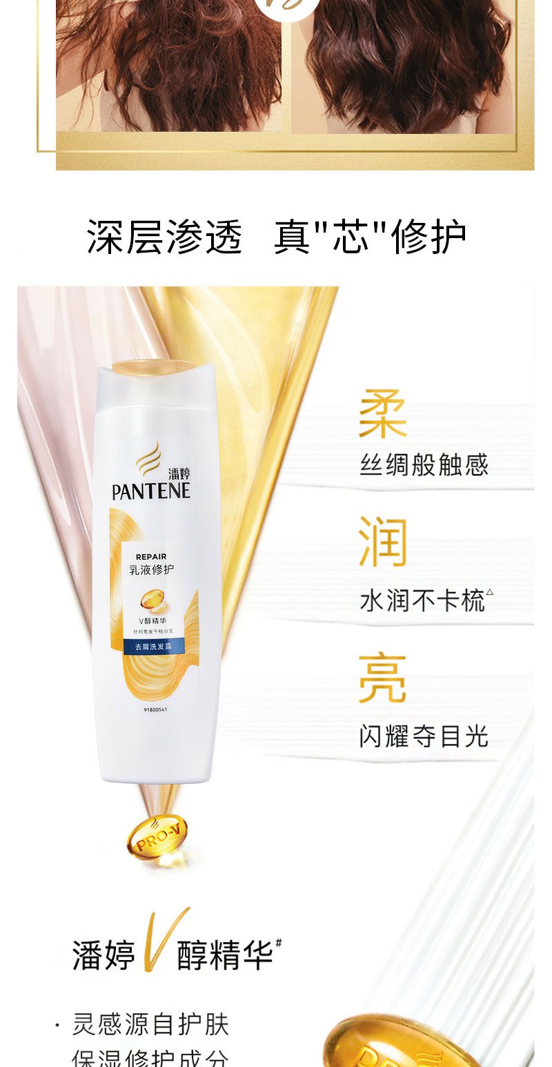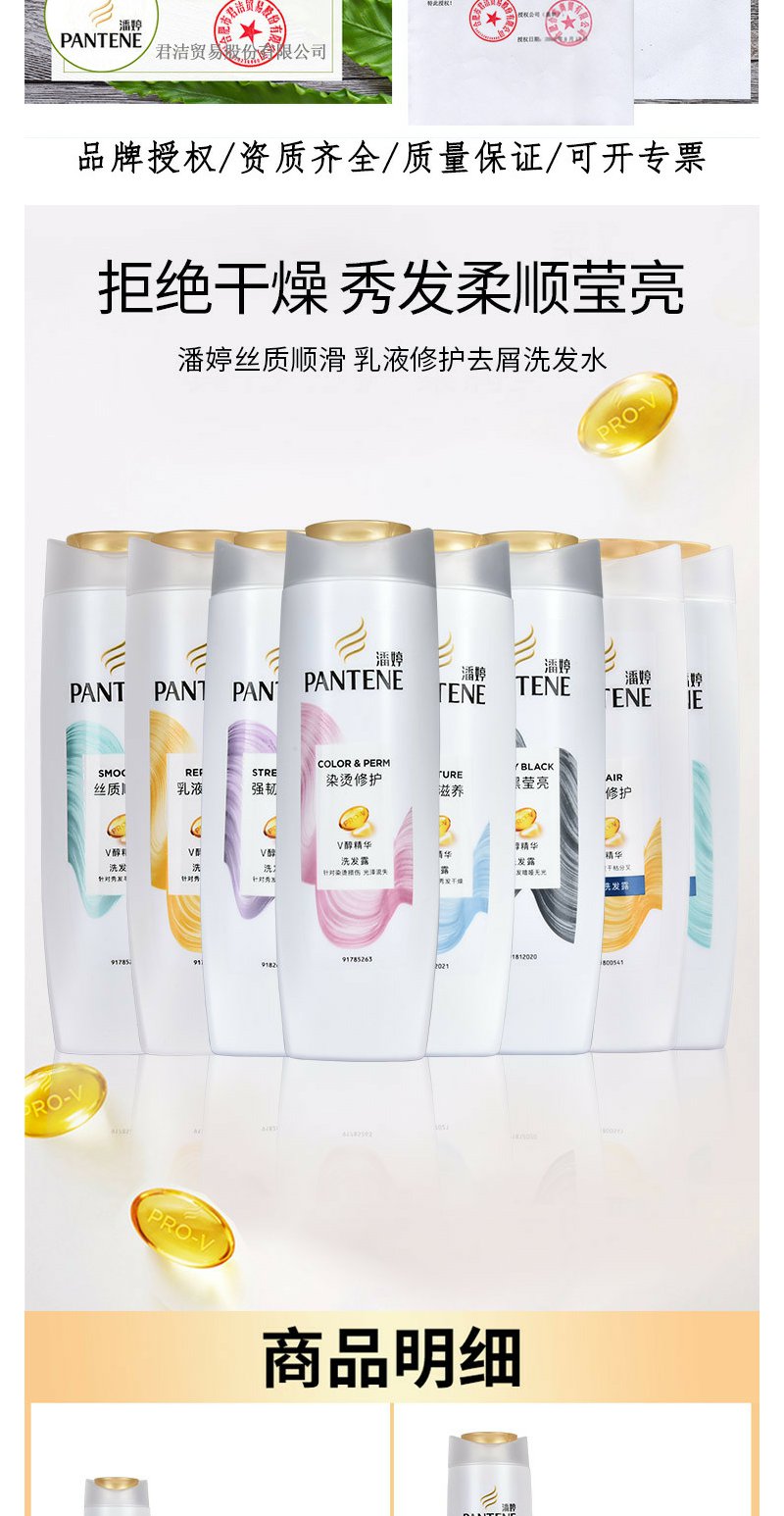 潘婷洗发水【丝质顺滑】洗发露400ml/瓶洗发水强韧养根干枯柔顺
