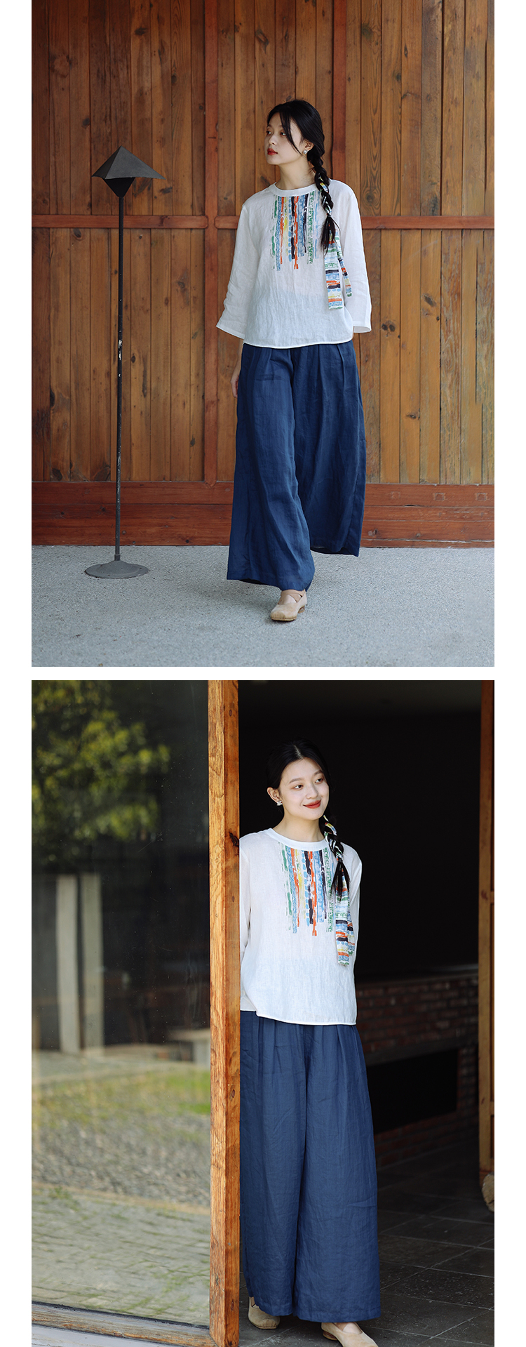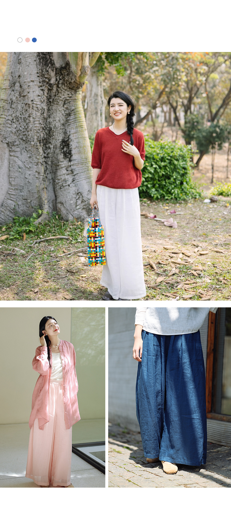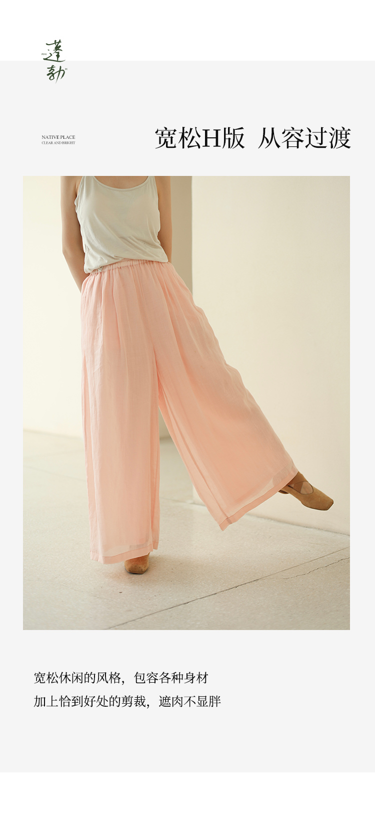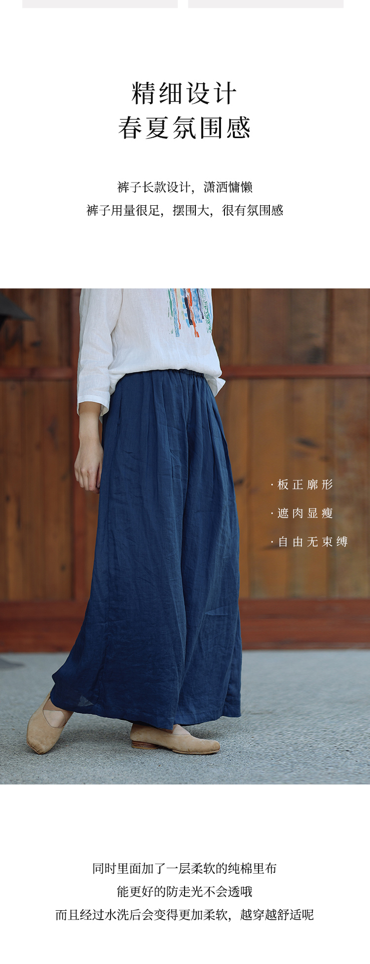 绽放196+197朵/白月光宽松高级感100支纯苎麻双层白色飘逸仙女阔腿裤
