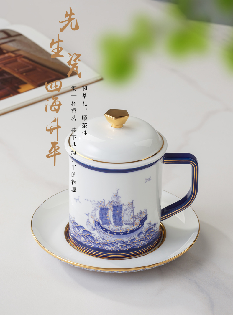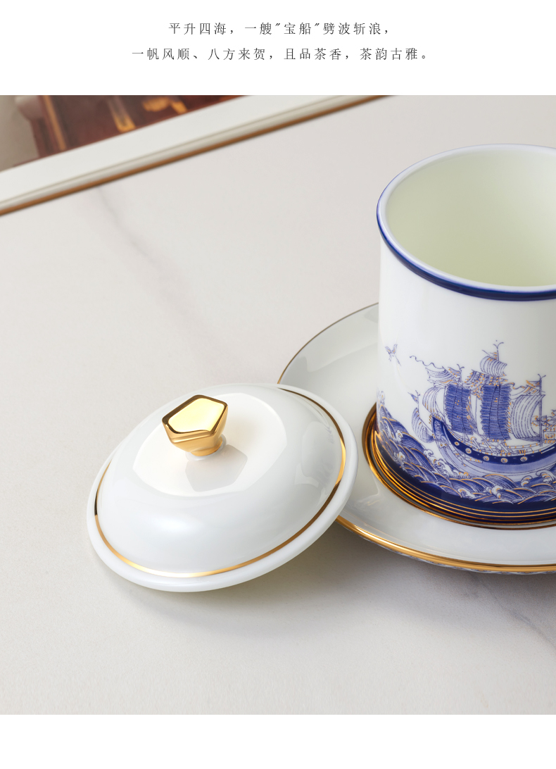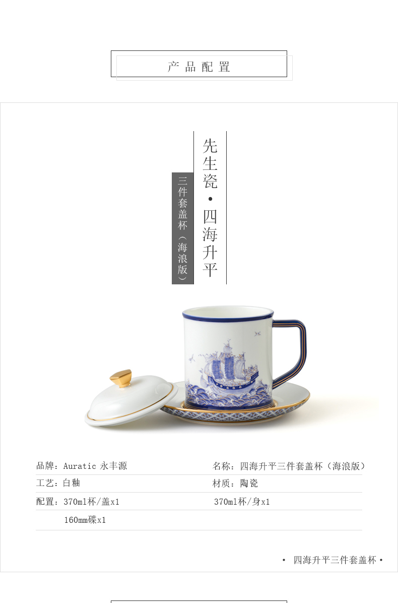 【6F】国瓷永丰源 四海升平三件套盖杯(海浪版)