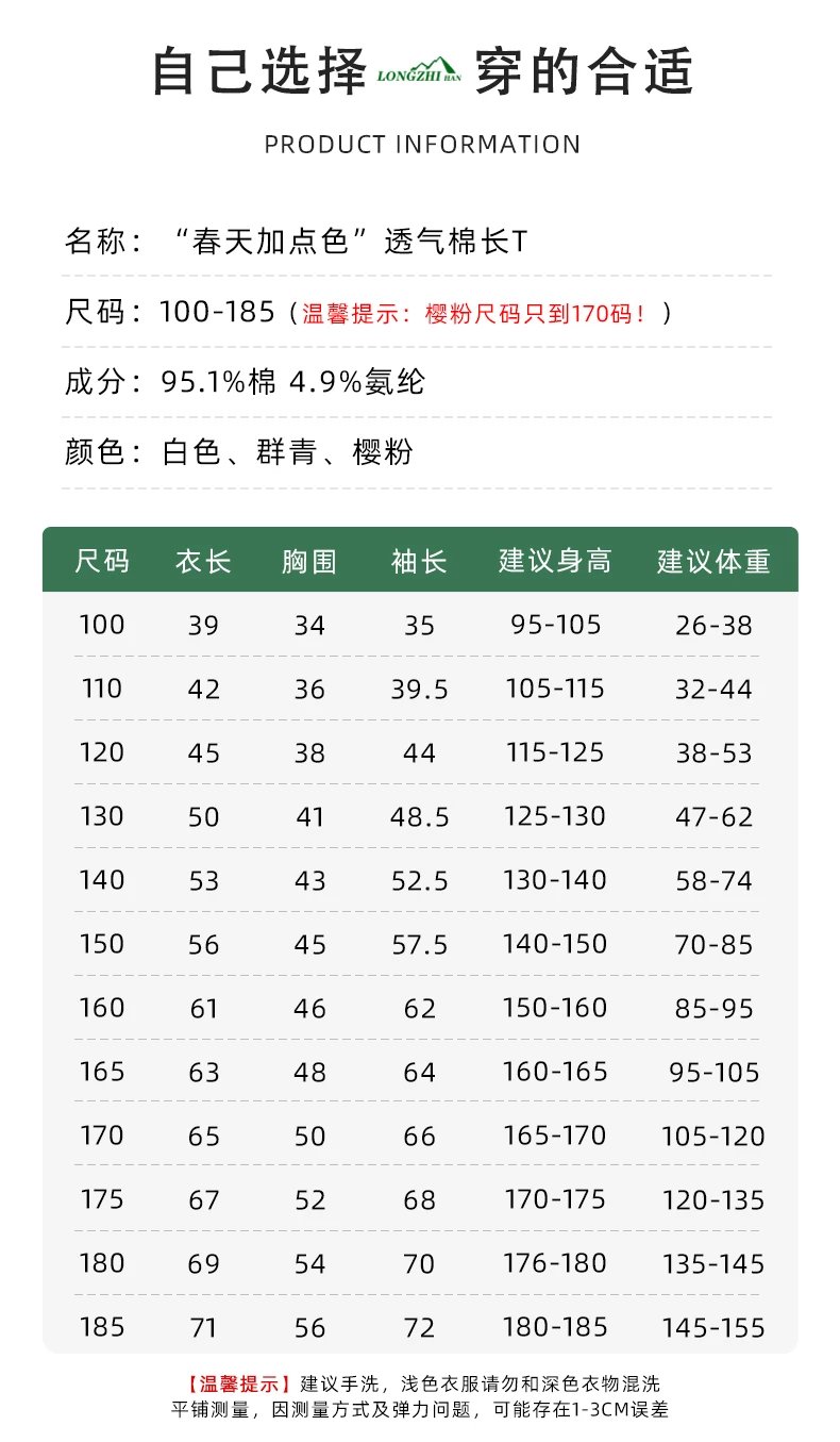 【2024年反季清仓】龙之涵 亲子款“春天加点色”透气棉长T 中大童亲水冰瓷棉长袖T恤 舒适百搭透气吸汗 婴幼儿A类标准 100-185码3色可选