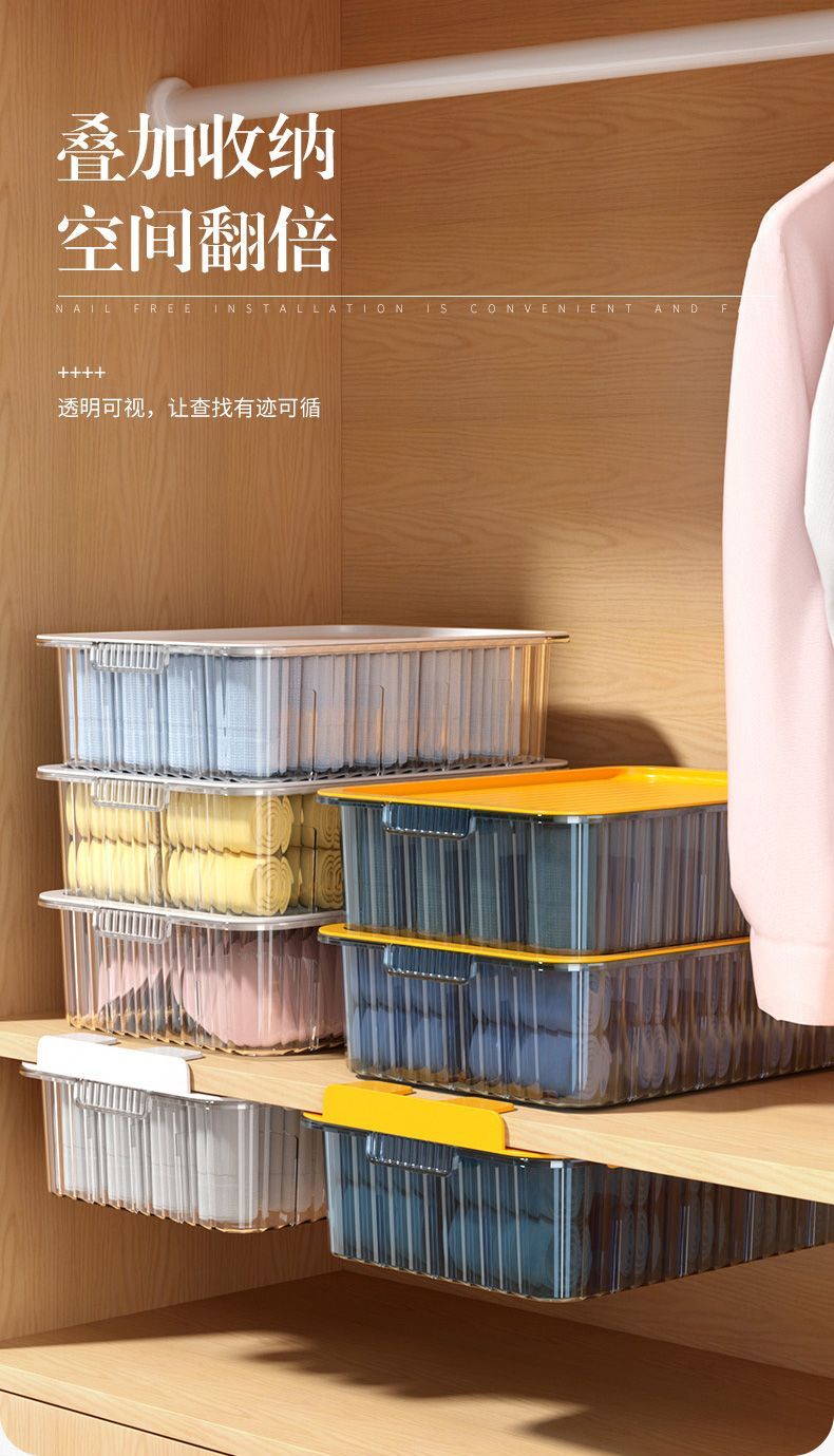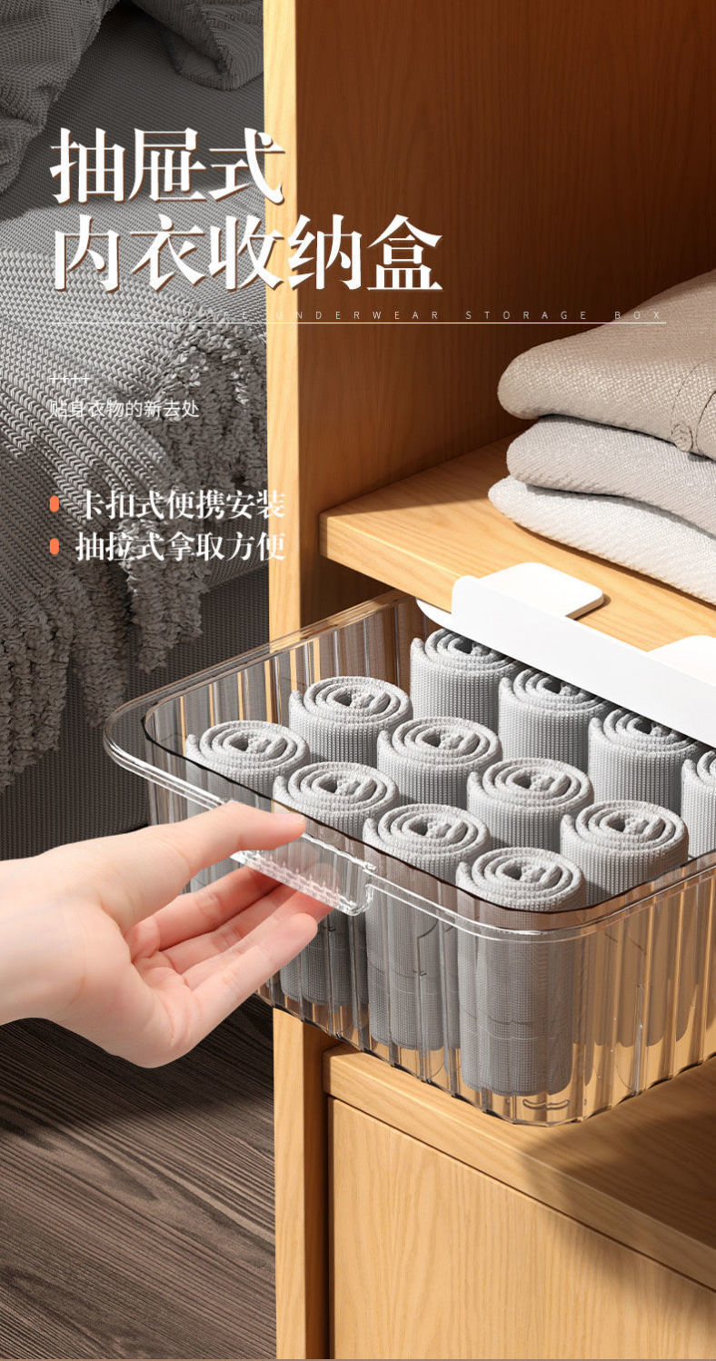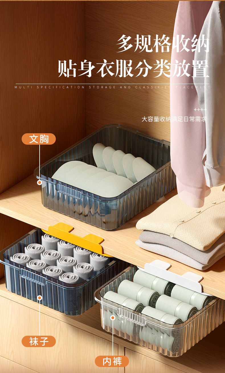 内衣收纳盒抽屉式内裤袜子文胸整理盒家用衣柜透明分格带盖储物箱