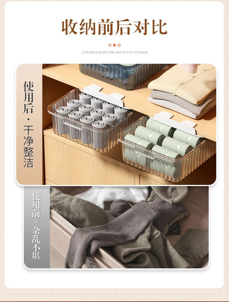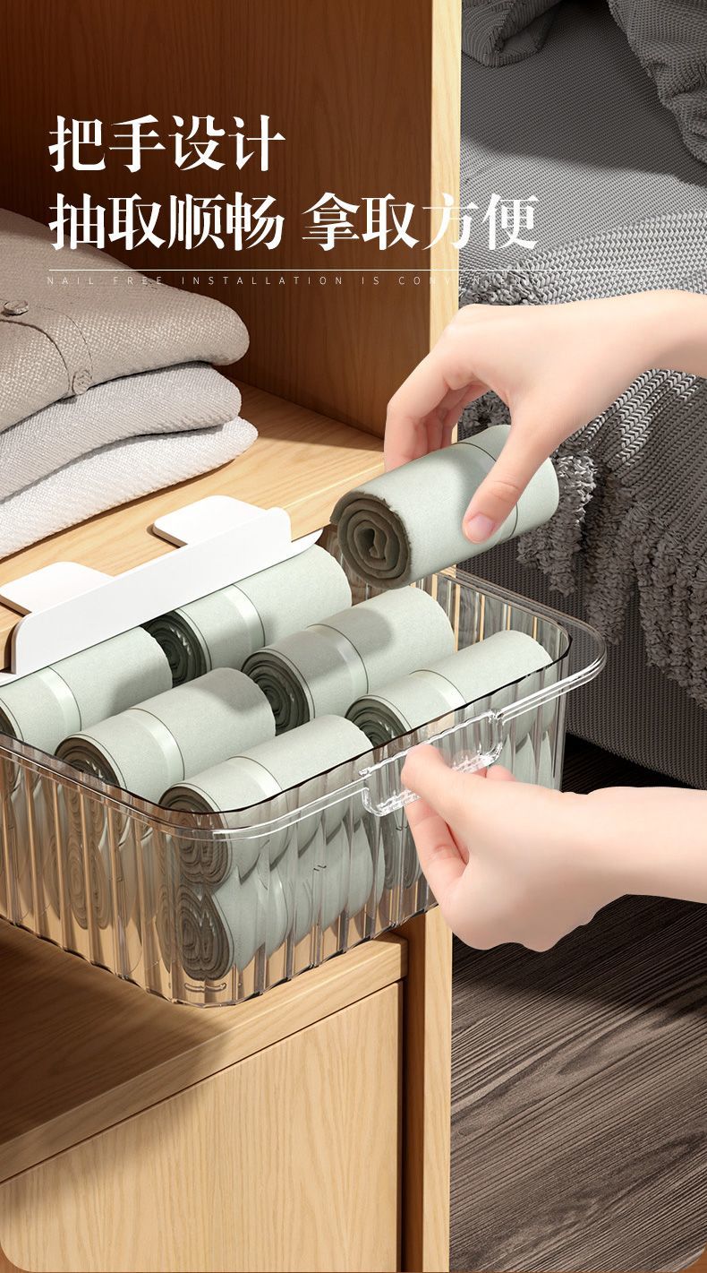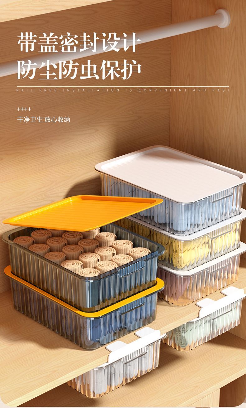 内衣收纳盒抽屉式内裤袜子文胸整理盒家用衣柜透明分格带盖储物箱