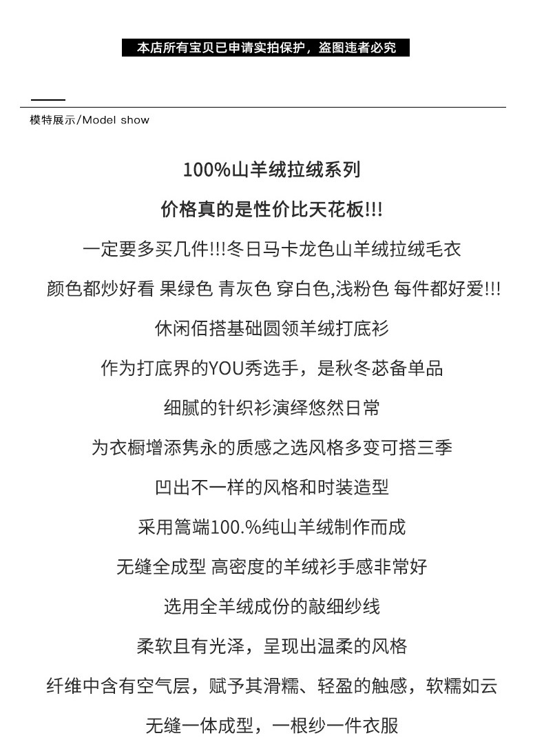 【源头工厂】100纯山羊绒一线成衣无缝拉绒圆领超A级针织衫毛衣