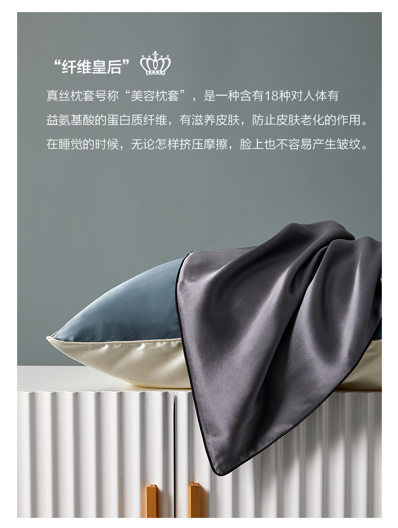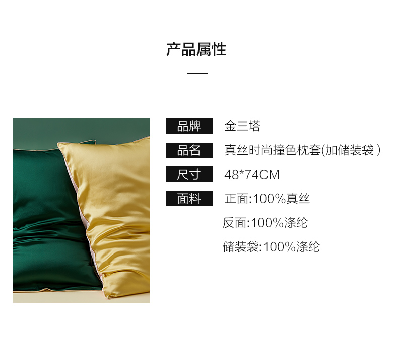 金三塔100%桑蚕丝枕套蚕丝单人信封式单面时尚撞色枕头套一个装 CSZT025