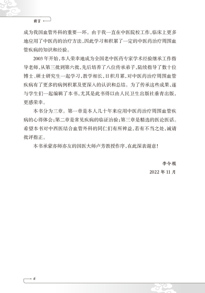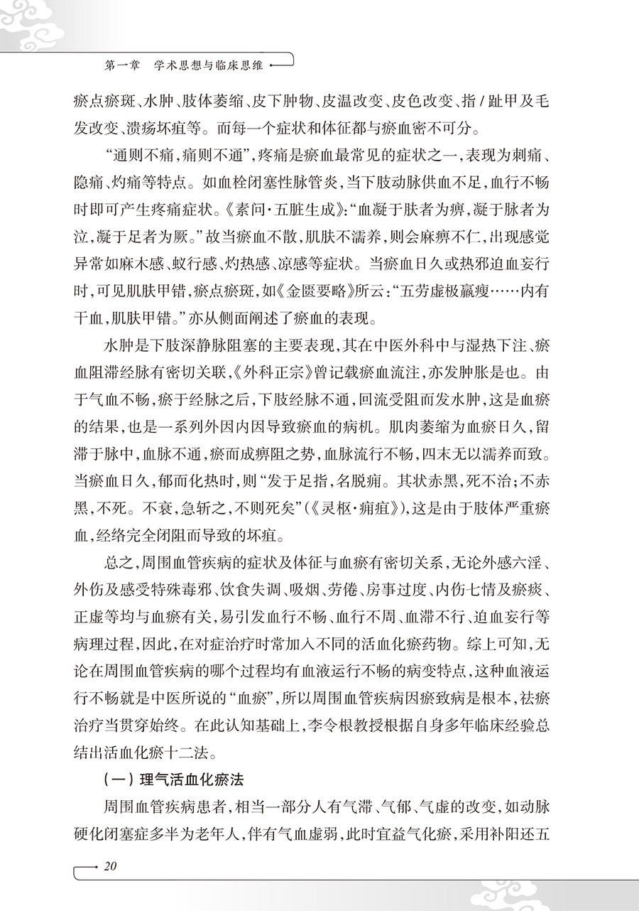 李令根教授是我国著名的中西医结合血管外科专家,为第三至六批全国老中医药专家学术经验继承工作指导老师。本书共分三章。第一章重点介绍李老的学术思想与临床思维,及其五十余年应用中医中药治疗周围血管疾病的心得体会、常用方剂等;第二章详细阐述李老对常见周围血管疾病的辨治方法及临床医案;第三章是精选的学术会议讲稿。本书内容翔实,资料珍贵,具有较高的学术价值,是周围血管病、血管外科临床和教学工作者的重要参考书籍。