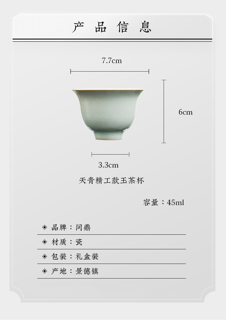 问鼎汝瓷鼎峰系列老款天青玉茶杯