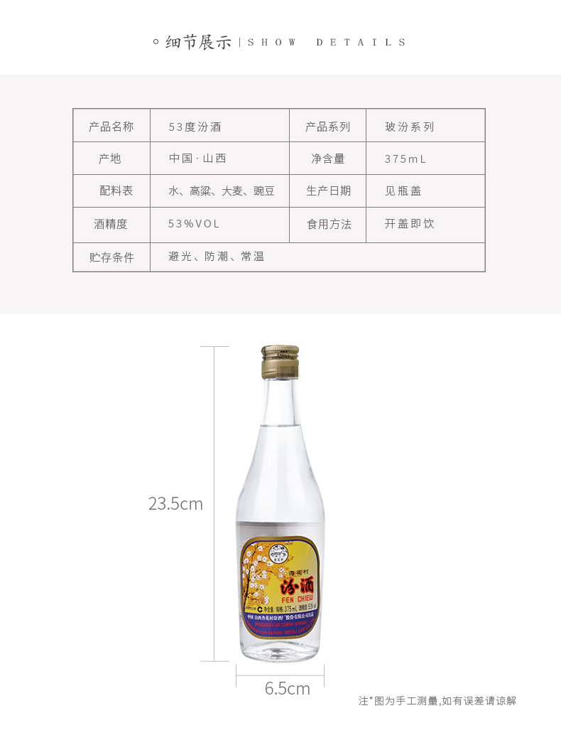53°(375ml)出口汾(2017) 375ml*1 山西杏花村汾酒