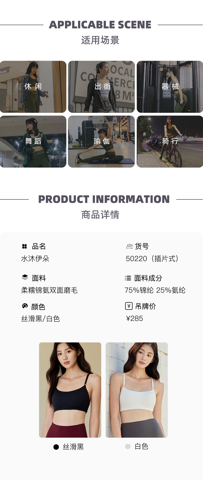 SMOEDOD/水沐伊朵裸感简约休闲纯色修身防走光运动内衣50220