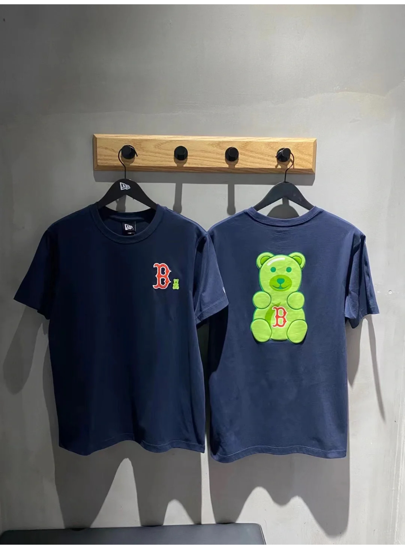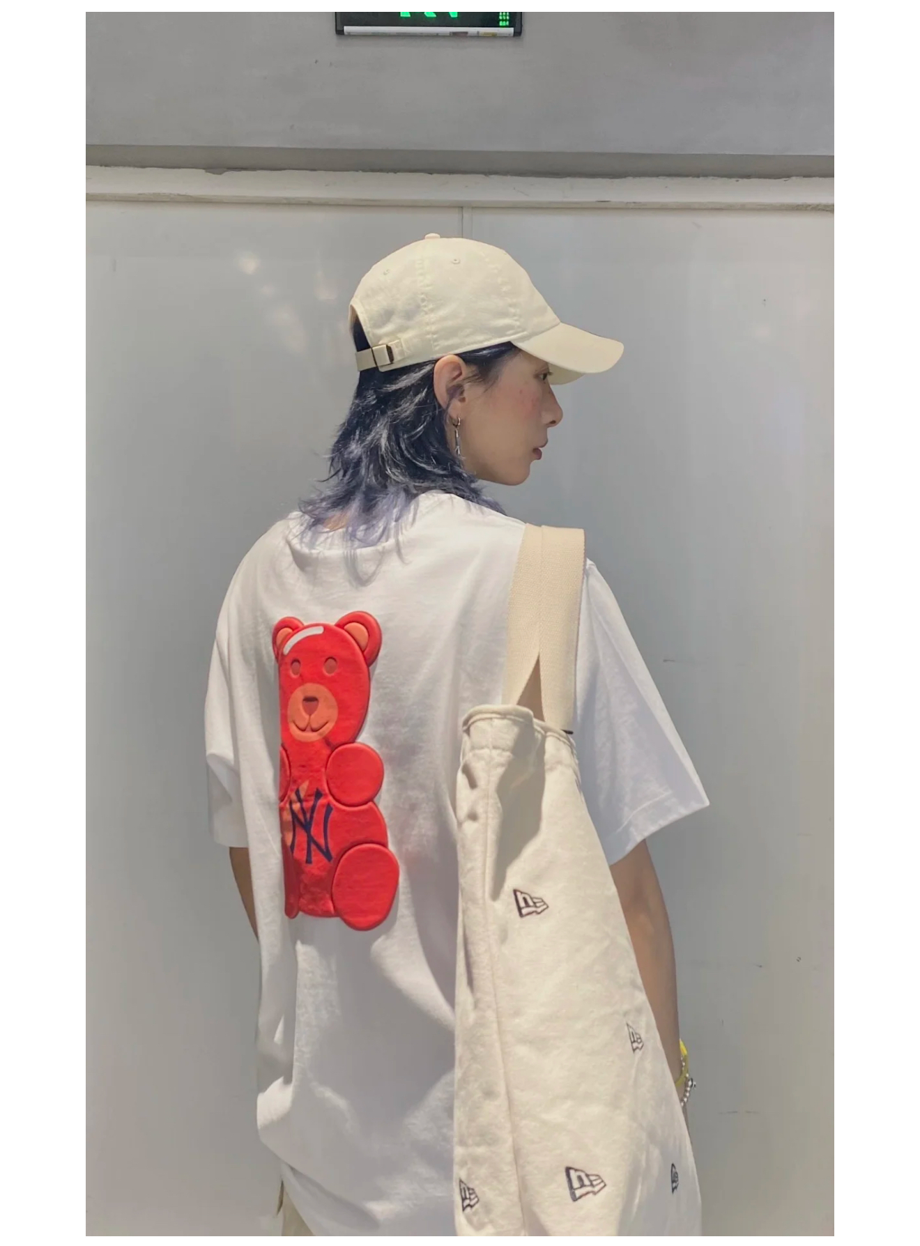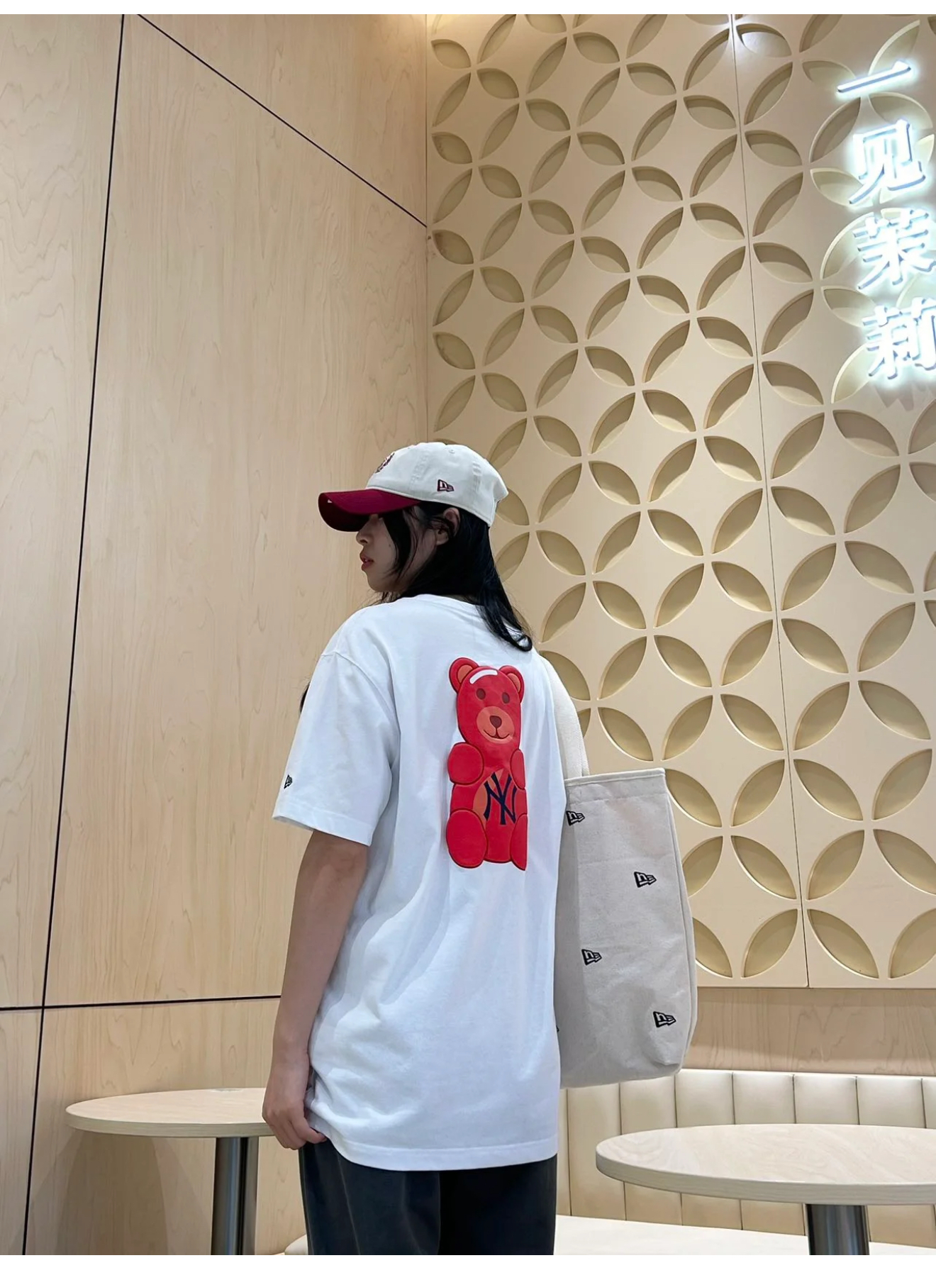 纽①华 小熊印花 情侣款圆领短袖T恤