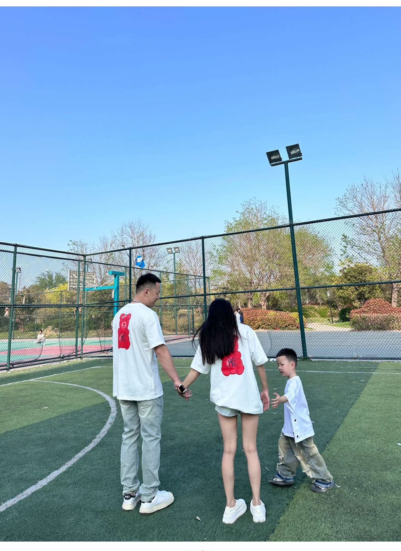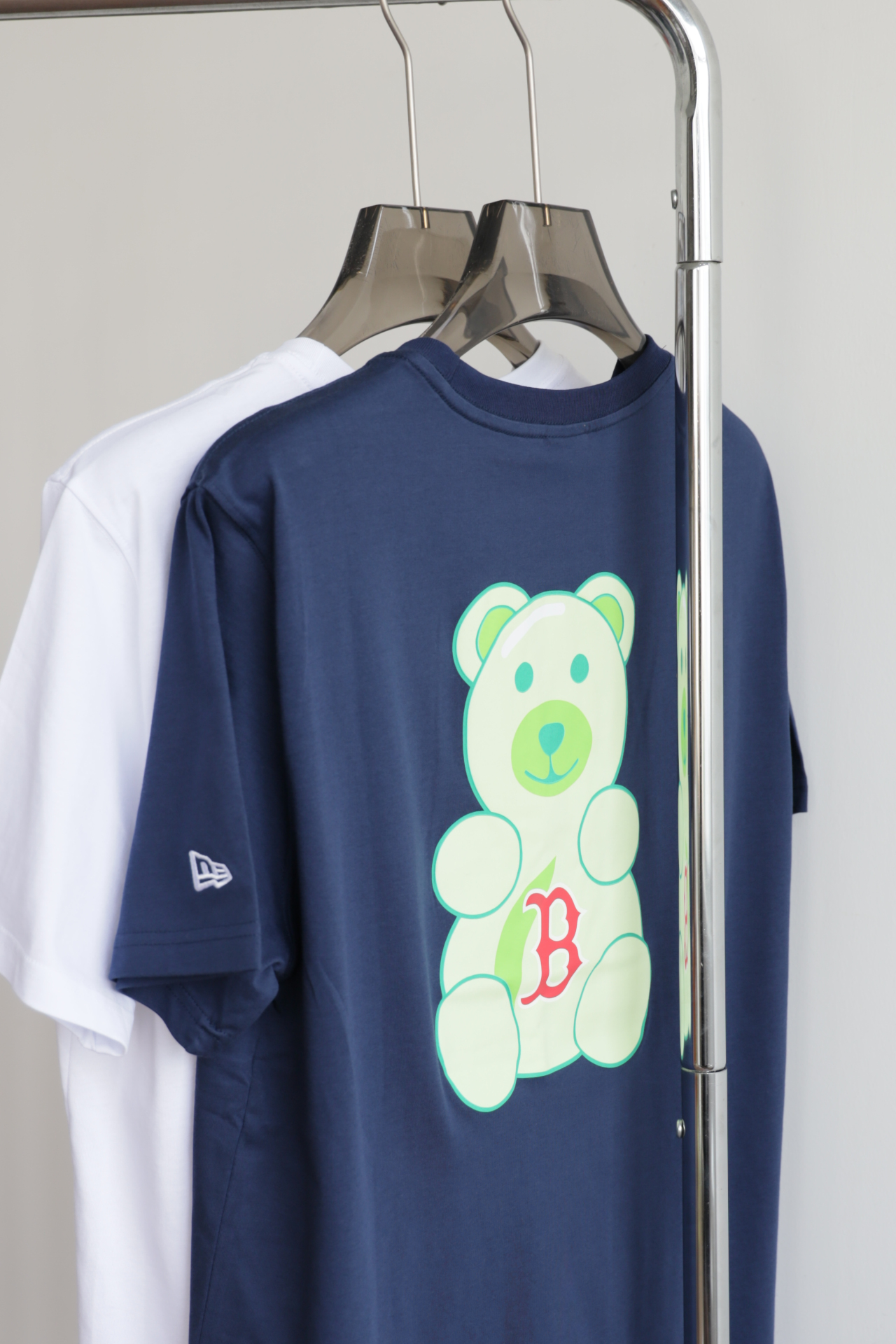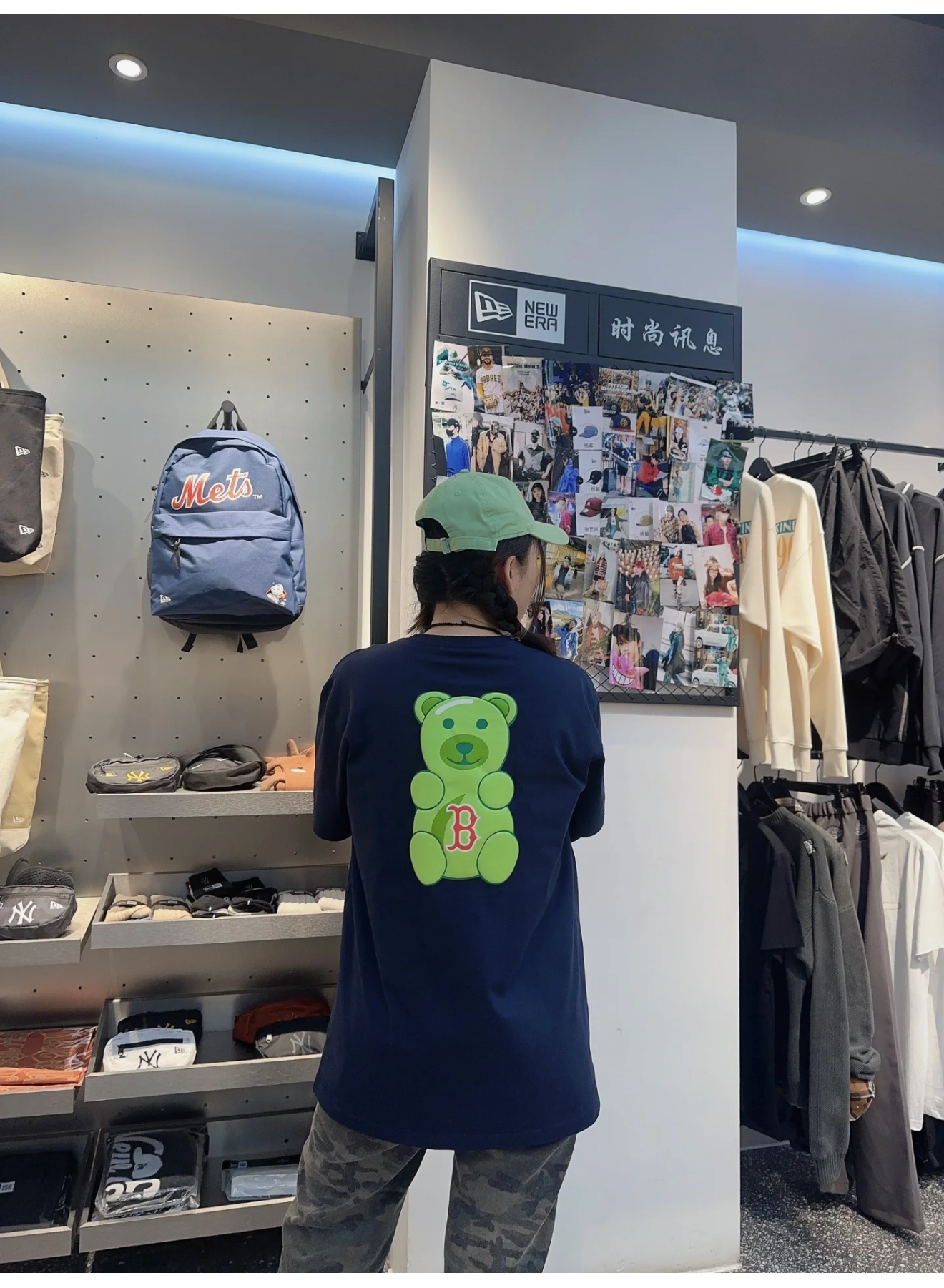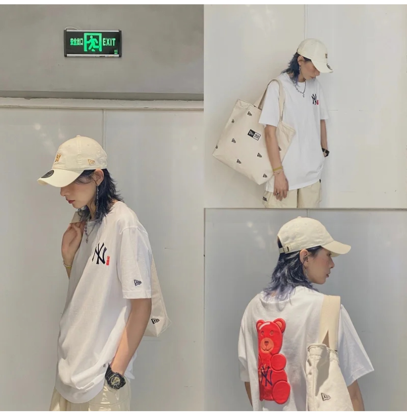 纽①华 小熊印花 情侣款圆领短袖T恤