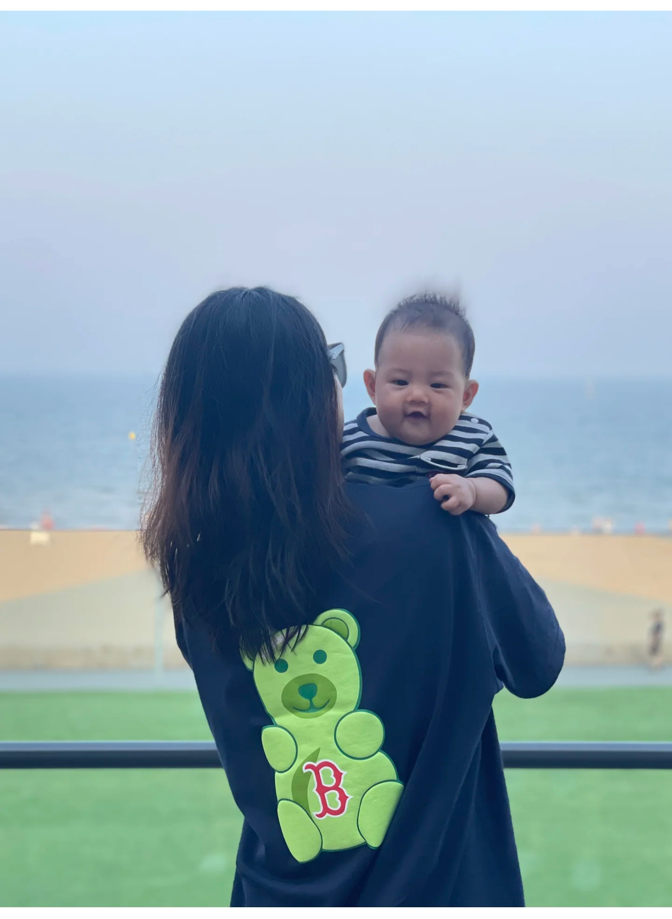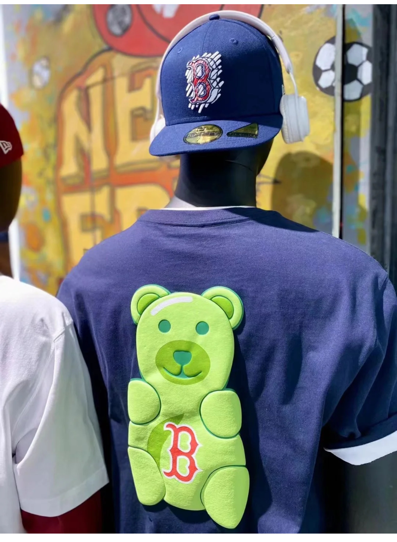 全棉水洗,正面字母小刺绣,背面小熊立体印花
