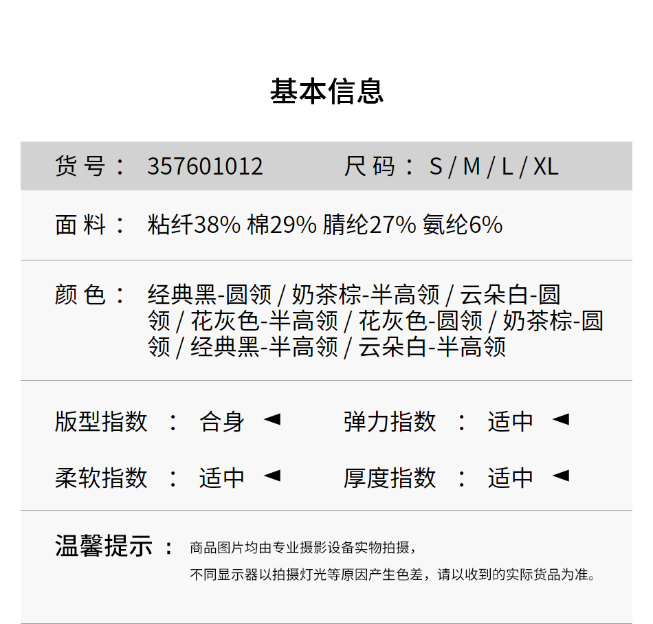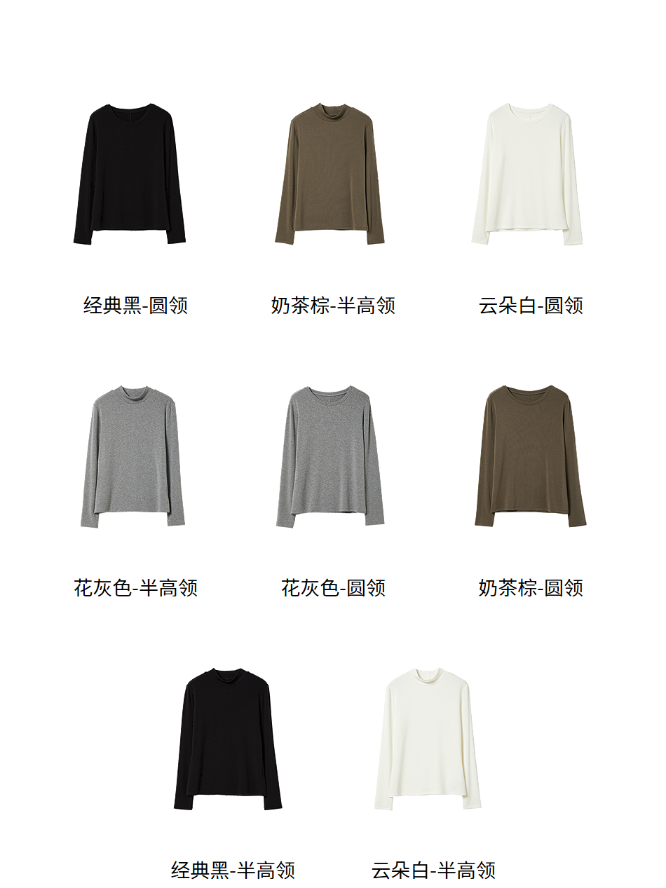 棉仓357601012-慕斯打底轻暖发热多领型发热打底衣