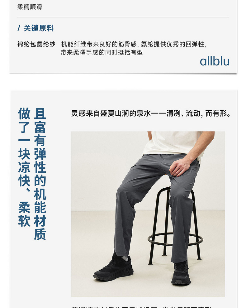 allblu男装“轻薄而有型”26春夏【轻盈凉感四面弹】男士直筒长裤