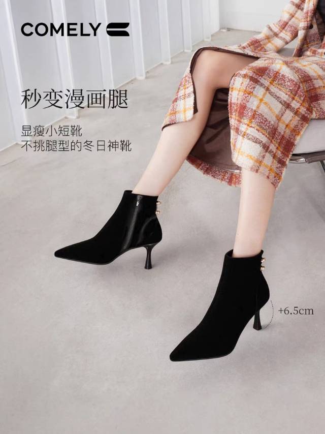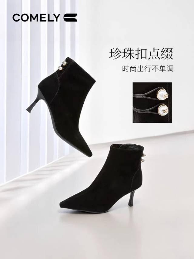 【云粉节】BF楼细跟时装靴女2025冬季新款绒面高跟短靴羊皮小裸靴 KYQ58601 吊牌价1580 活动价790