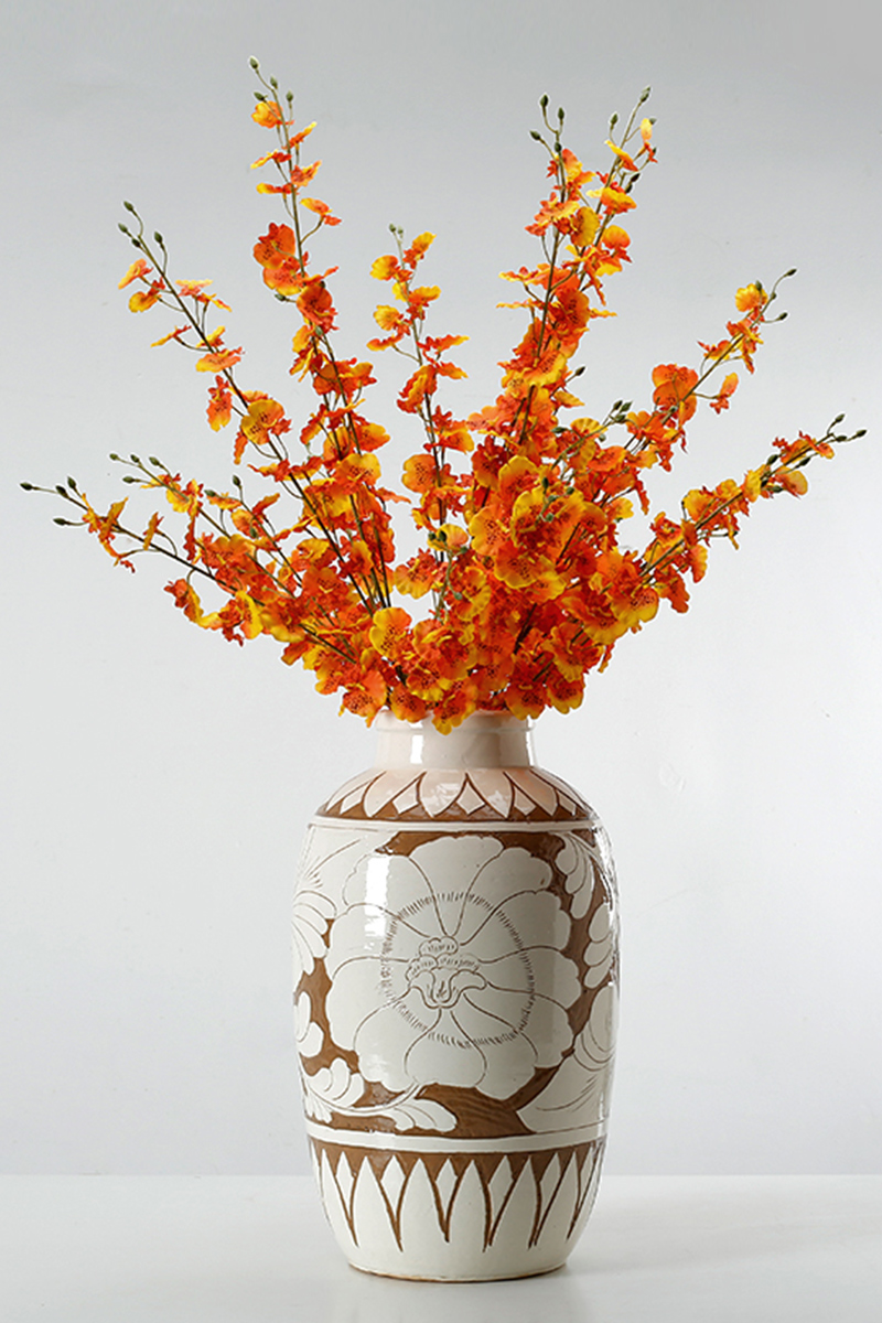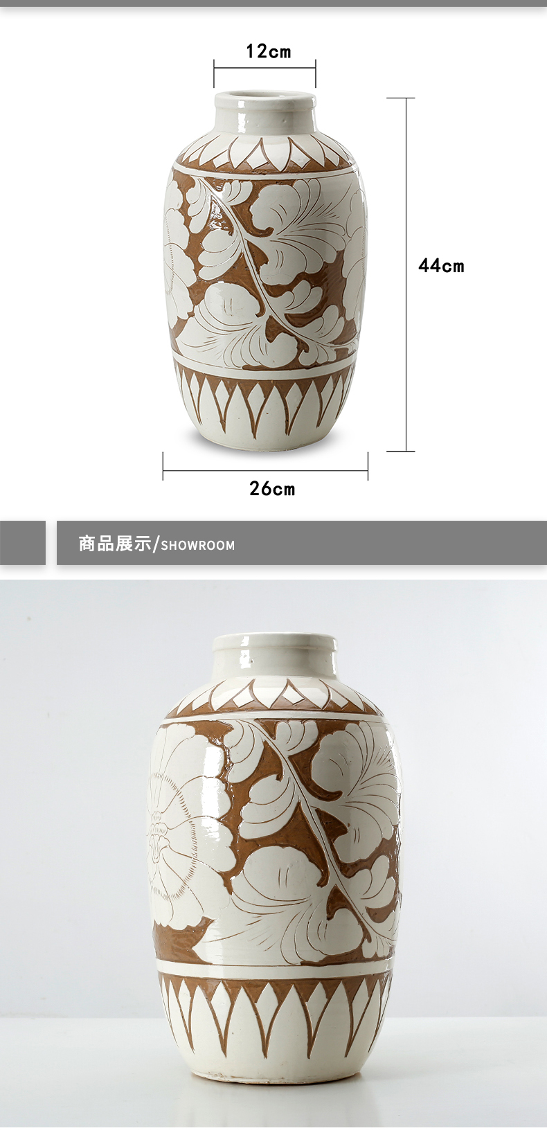 宋代磁州窑雕刻花鸟图仿古瓷器花瓶摆件侘寂风花器复古粗陶罐饰品