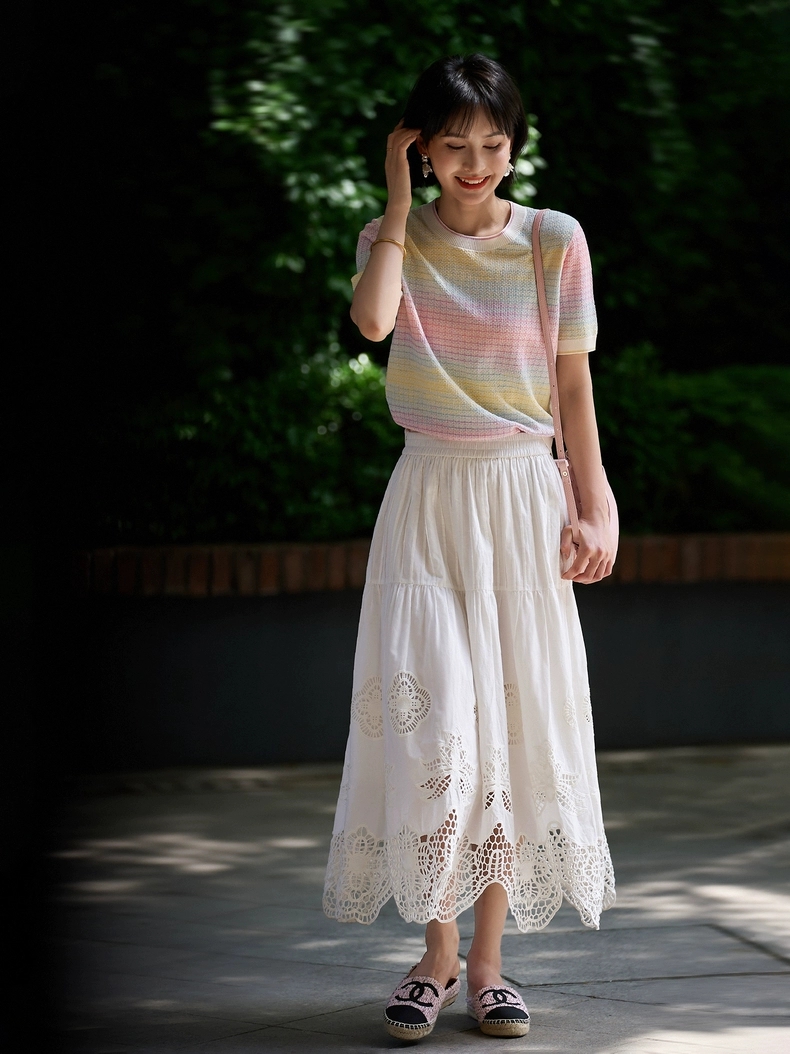 就像大自然创作的精品你收到的,将是只属于自己的衣衫6种色彩随性排列,段段衔接每一件的色彩位置都不会重复穿上它,你就是人群中的风景享受属于自己的时尚态度。