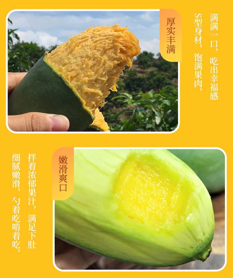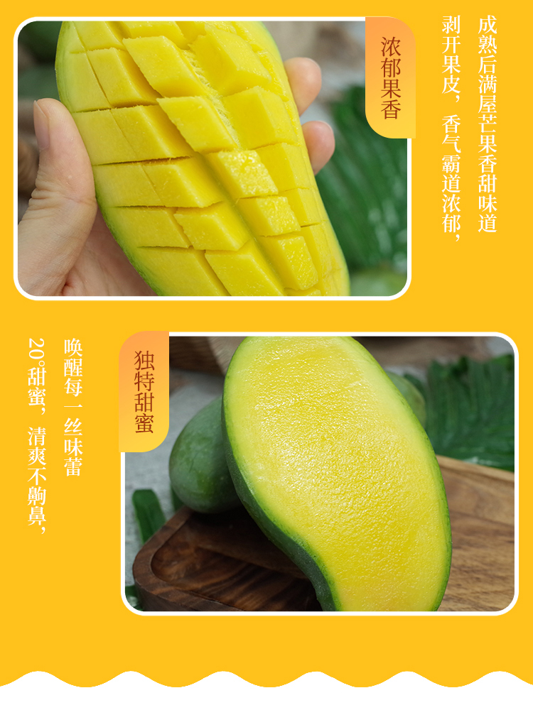 食用方式:鲜果鲜吃(芒果发货为7-8分成熟的果,收到未成熟请放纸箱继续存放,熟后才可放入冰箱冷藏嗷!)